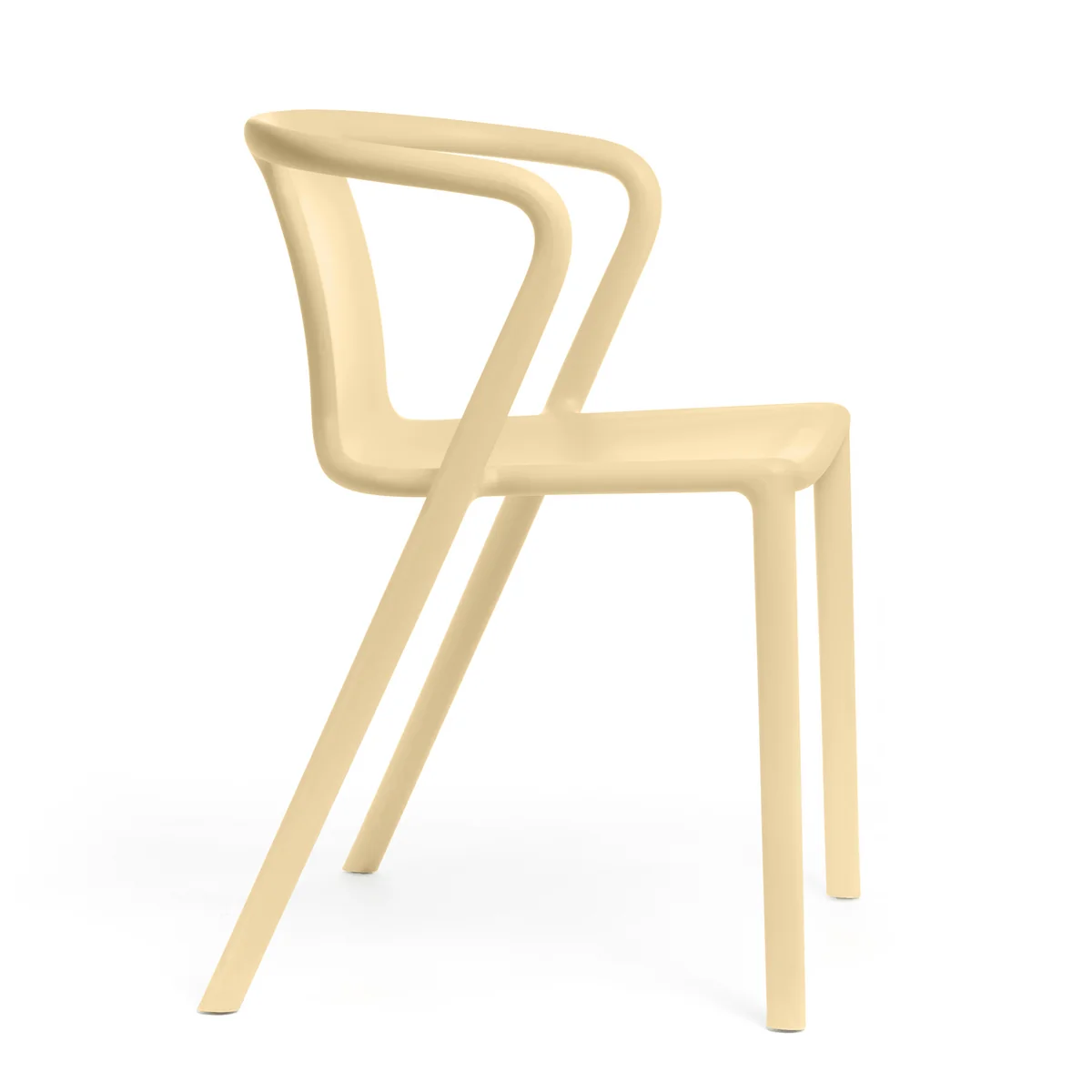 Morrisons Arbeiten gelten im Allgemeinen als schlicht aufs Wesentliche reduziert. So ist auch der Air Armlehnstuhl stapelbar und aus Polypropylen gefertigt, das durch Glasfaser verstärkt und in einem aufwendigen Gaseinspritzverfahren verarbeitet wird.