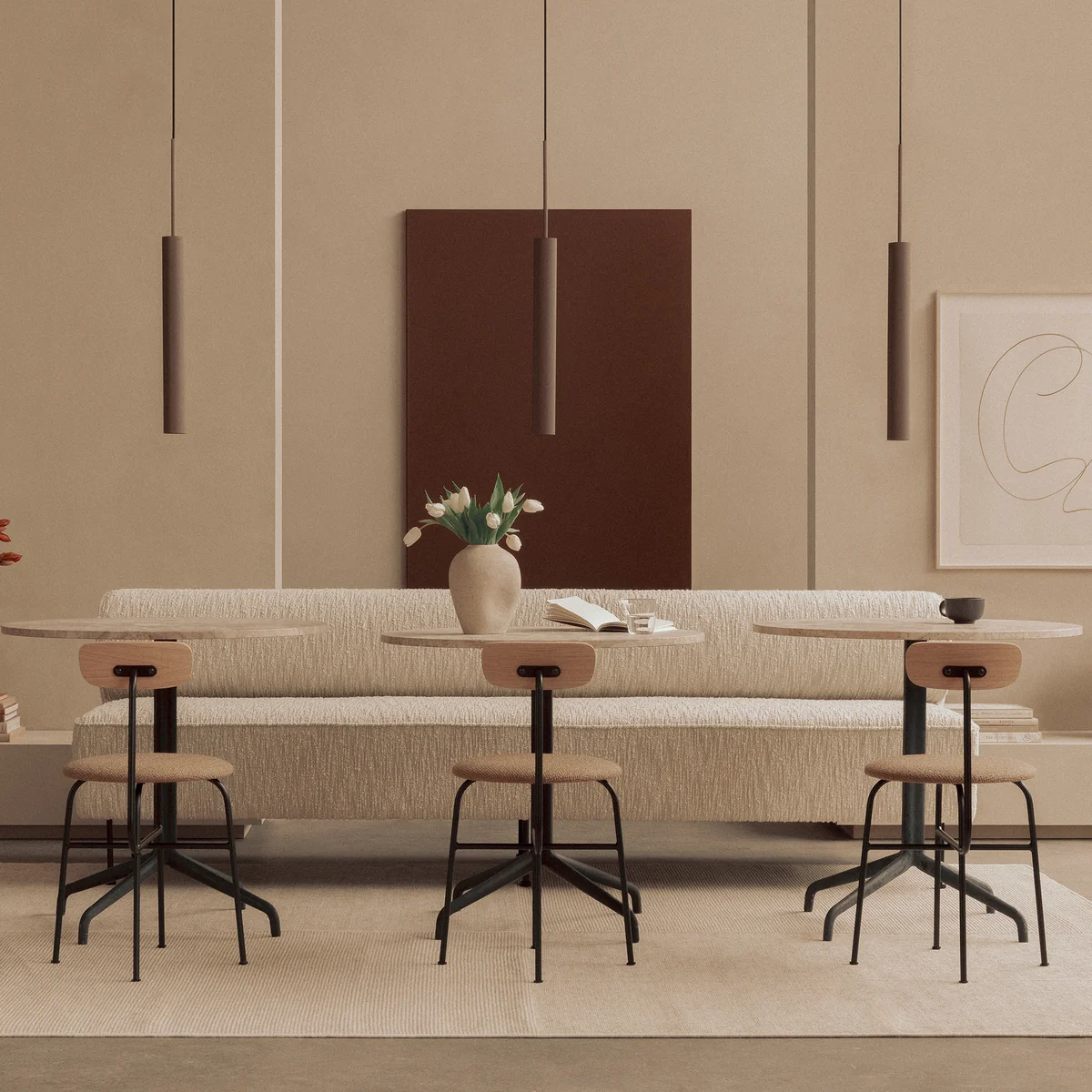 Um die Stabilität und Qualität zu gewährleisten, fertigt Audo den Afteroom Chair aus pulverbeschichtetem Stahl und hochwertigem Holz wahlweise mit Lederbezug.