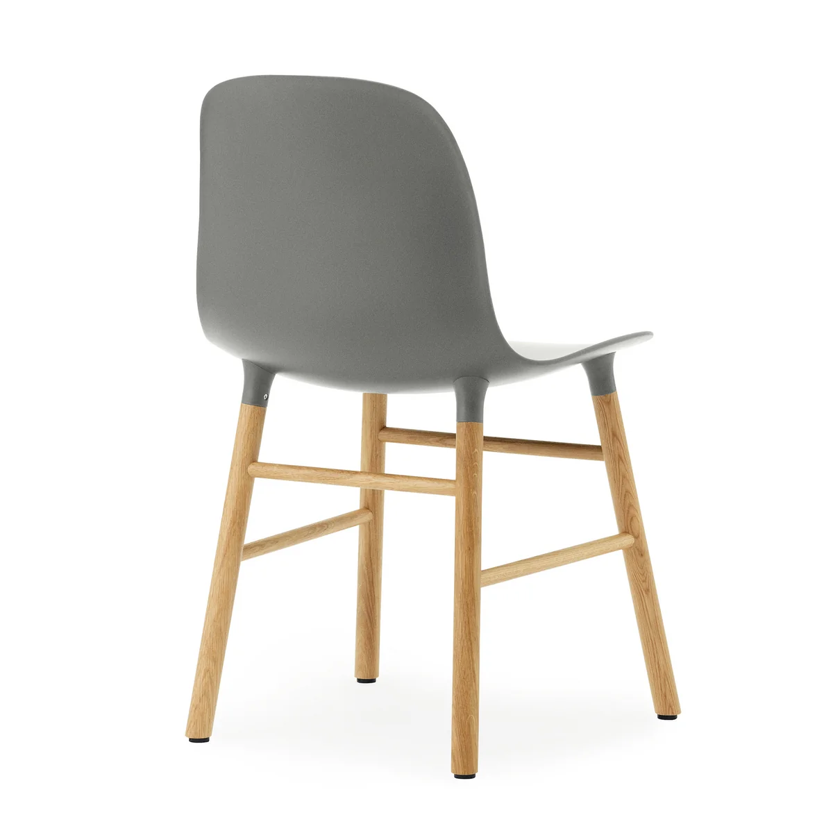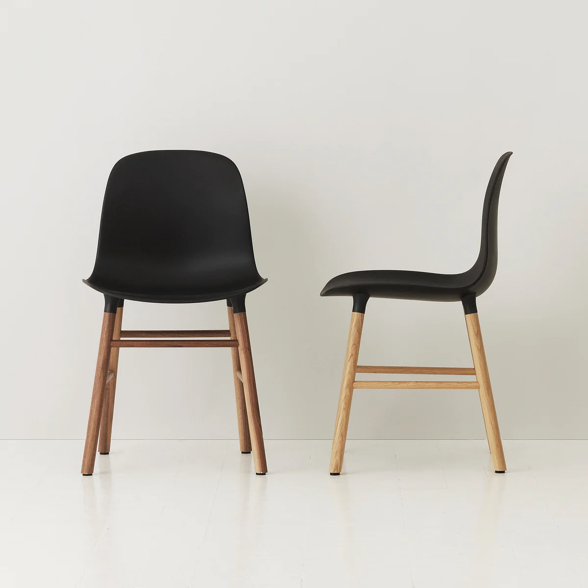 Mit der Mission, einen Schalenstuhl mit einzigartigem Design zu kreieren, hat Simon Legald den Form Chair für Normann Copenhagen gestaltet. Um die nahtlose Optik zu erzeugen, hat Legald eine neue Methode erschaffen, um die Holzbeine mit dem Stuhl zu verbinden: Die Sitzschale besitzt Steckverbindungen, in welche die Beine eingesteckt werden. So entsteht eine Optik mit weichen Übergängen und ohne harte Kanten - die Beine wirken fast, als würden sie aus dem Stuhl wachsen.