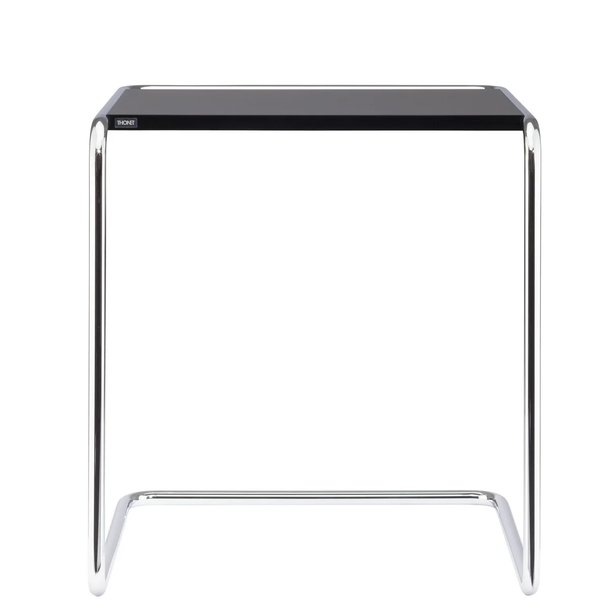 Der B 97 Tisch von Marcel Breuer für Thonet wurde bereits 1933 entworfen und zählt heute zu den Klassikern unter den Stahlrohr-Möbeln. Dabei begeisterte das Design nicht nur durch den innovativen Materialeinsatz von Stahlrohr, sondern auch durch die überaus praktische Form, die es erlaubt den Tisch - dank der offenen Seite - an den Sessel, das Bett oder Sofa zu ziehen.