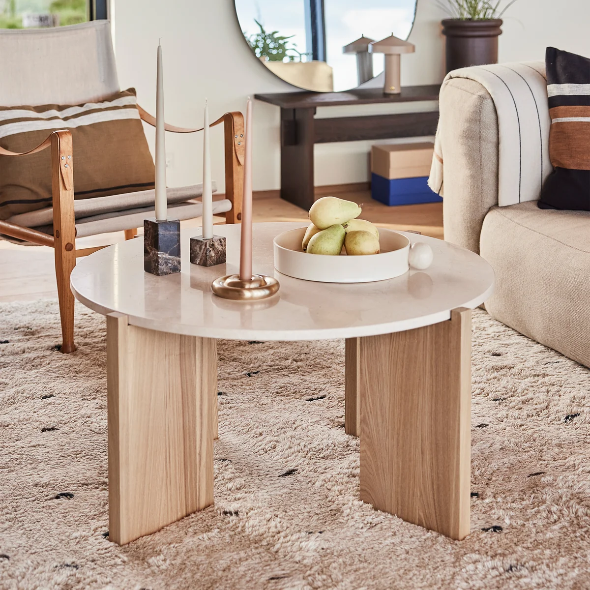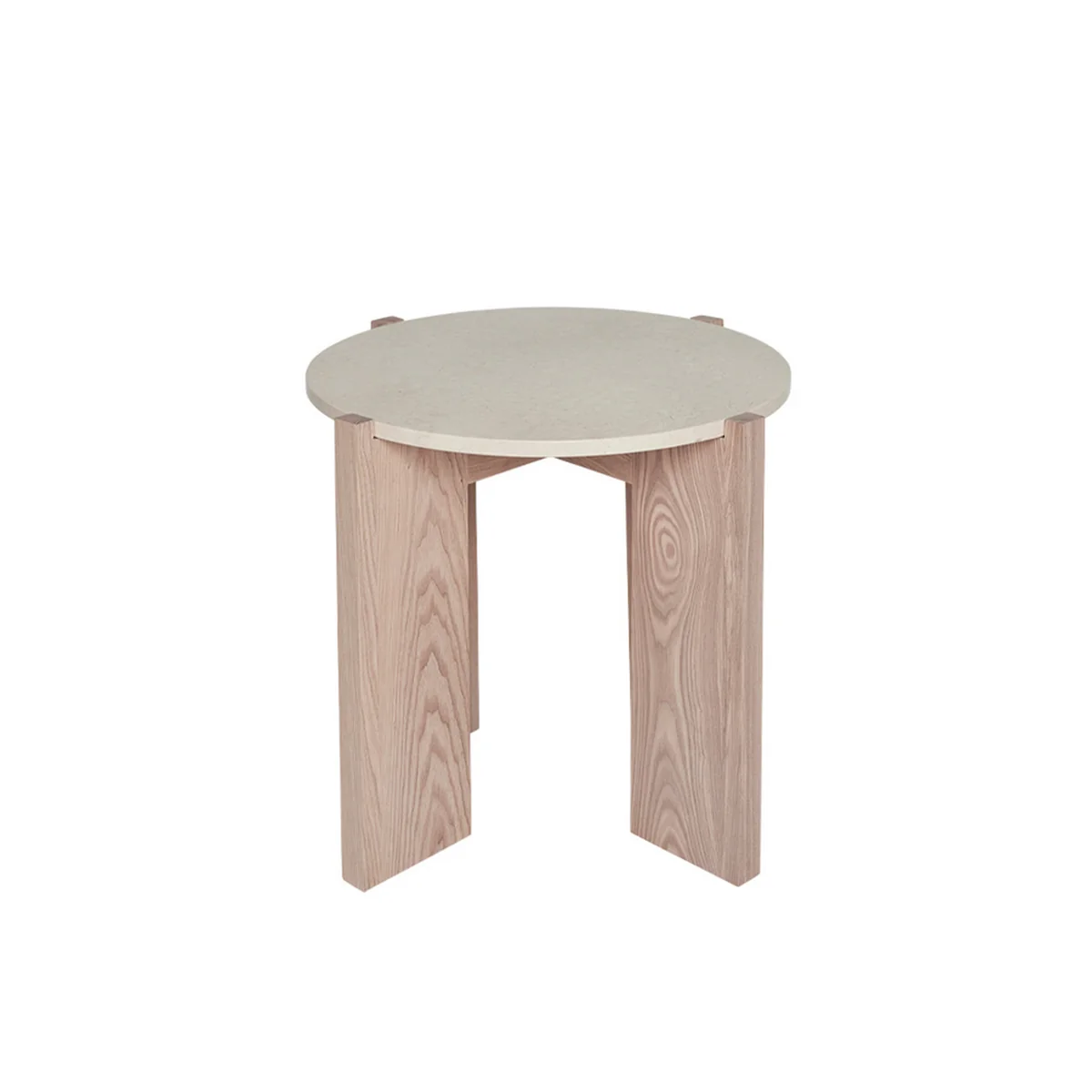 Das charakteristische Merkmal des Lune Beistelltischs ist die runde Tischplatte, die durch ihre sanften Linien und das hochwertige Material eine warme und einladende Atmosphäre schafft. Die Tischplatte besteht aus qualitativem Holz und wurde sorgfältig verarbeitet, um eine glatte Oberfläche zu gewährleisten. Die klaren Linien und die minimalistische Form machen ihn zu einem vielseitigen Möbelstück, das sich problemlos in verschiedene Einrichtungsstile integrieren lässt.
