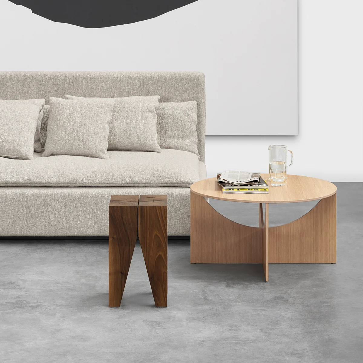 Runder, skulpturaler Couchtisch aus Eichenfurnier