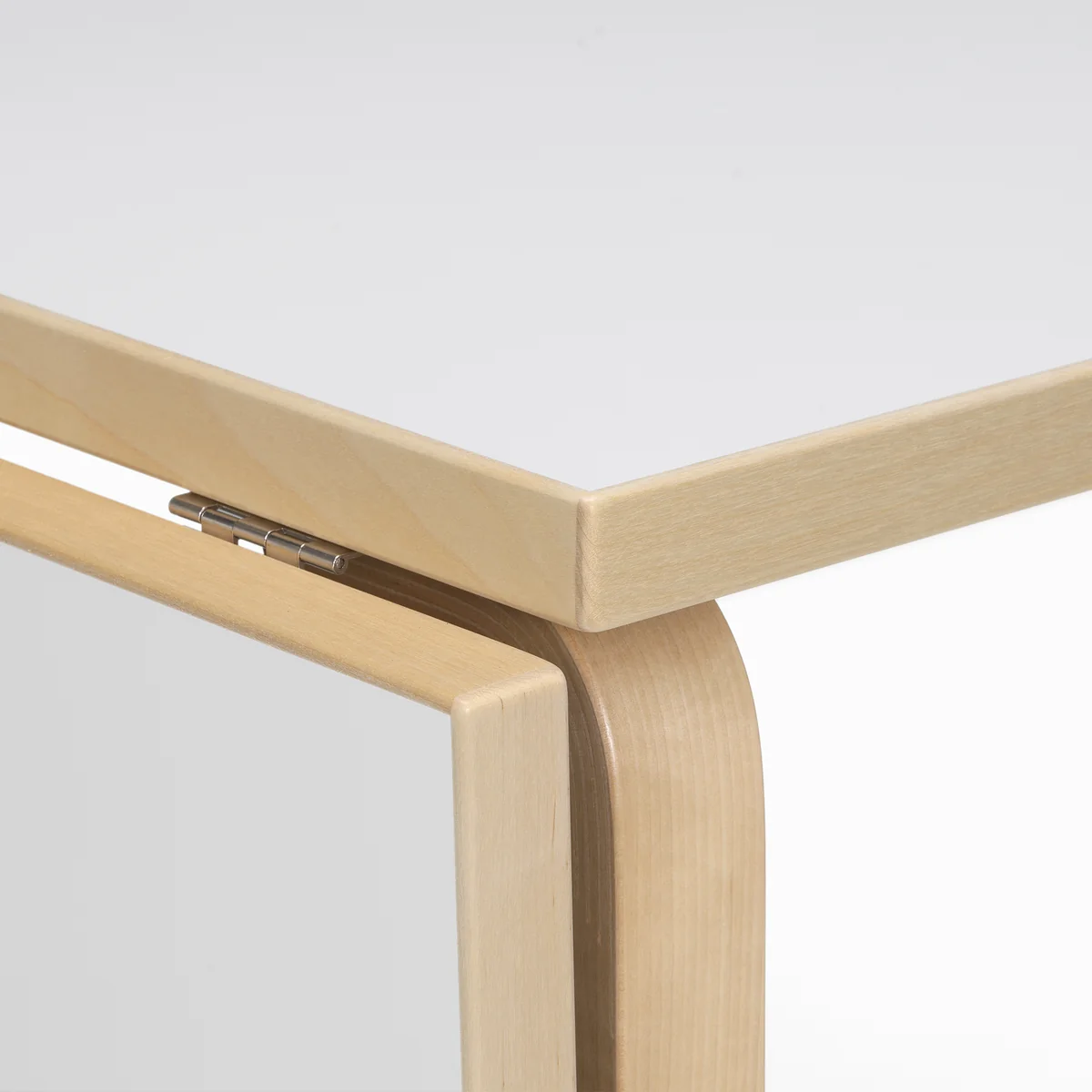 Der Aalto DL81C klappbare Esstisch von Artek, entworfen von Alvar Aalto im Jahr 1933, ist ein kompakter und vielseitiger Holztisch, der sich bei Bedarf einfach ausklappen lässt, um zusätzlichen Platz zu schaffen. Dieser Tisch ist daher ideal für kleine Ess- oder Arbeitsbereiche. Die Beine und Kanten des Tisches sind aus massiver Birke gefertigt, während die klappbare Tischplatte mit strapazierfähigem und leicht zu reinigendem Hochdrucklaminat beschichtet ist, was ihn besonders als Esstisch geeignet macht. Hergestellt in Finnland.