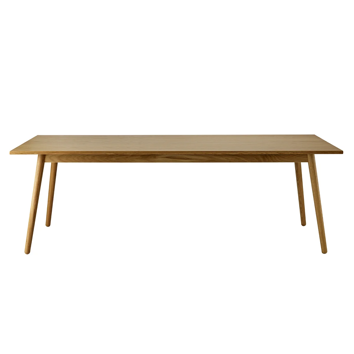 Die leicht nach außen geneigten Beine des Esstisches sorgen für eine besondere Ausdruckskraft und Stabilität. Gleichzeitig zeichnet sich der Tisch durch sein schlichtes Design aus, das sich hervorragend in verschiedene Einrichtungen einfügt. Mit einer Größe von 95 x 220 cm bietet der Tisch Platz für die ganze Familie oder Freunde bei Dinnerabenden.