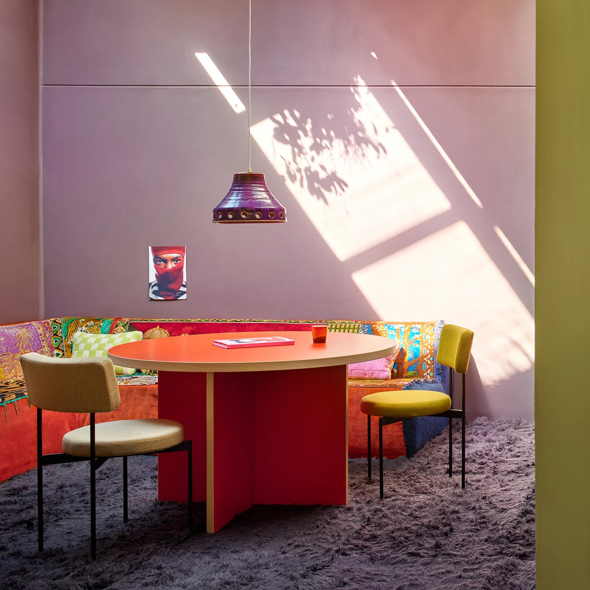 Der Esstisch aus dem niederländischen Hause HKliving bringt die gesamte Familie zusammen. Er ist in unterschiedlichen Größen und Farben erhältlich. Der runde Esstisch ist in schlichten sowie in aussagekräftigen starken Farben erhältlich. Das zeitlose Designobjekt wird aus 70% Eorolight, 22% MDF, 7% HPL und 1% Metall gefertigt.