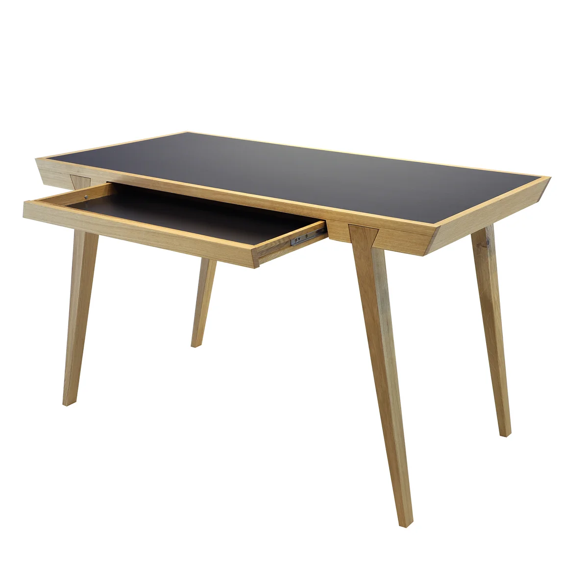 Der Desk Schreibtisch von Jan Kurtz kann unglaublich vielseitig eingesetzt werden! Ob als Esstisch, Schreibtisch oder gar als Konsole - der Desk Tisch ist ein absolutes Designerstück. Der Rahmen des Tisches wird aus massiver, geölter Eiche gefertigt. Die Trägerplatte besteht aus schwarzem Linoleum. Der Desk von Jan Kurtz verfügt außerdem über eine Schublade an der Unterseite der Tischplatte - Hier können Unterlagen mühelos verstaut werden. Mit seiner Einfachheit und seinen klaren Linien passt er sich jedem Wohnambiente an.