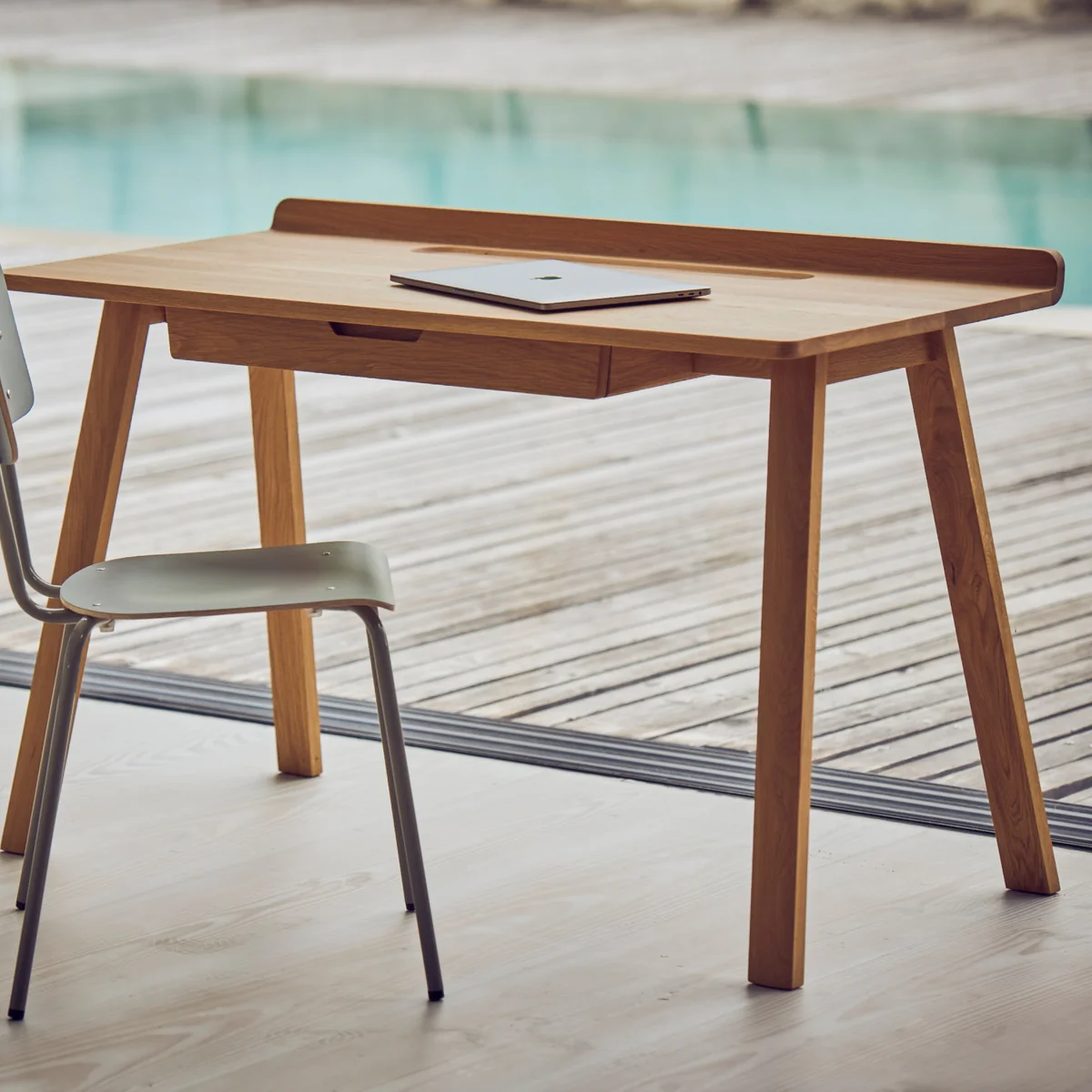 Mit dem Nara Schreibtisch von Jan Kurtz wird das Arbeiten zum Vergnügen! Der Schreibtisch aus massiven Eichenholz bietet auf seiner geölten Oberfläche ausreichend Platz für alle notwenigen Büro-Utensilien. Mit seinen klaren Linien, seinem reduzierten Design und seinem warmen Holz ist der Nara Schreibtisch ein wahrer Blickfang! Der Tisch verfügt zudem über eine Schublade, wo jegliche Unterlagen verstaut werden können.