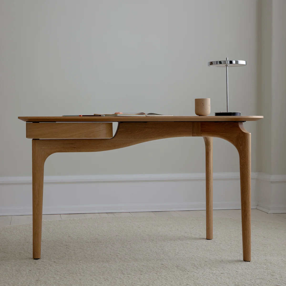 Schreibtisch mit weichen Linien aus Eichenholz