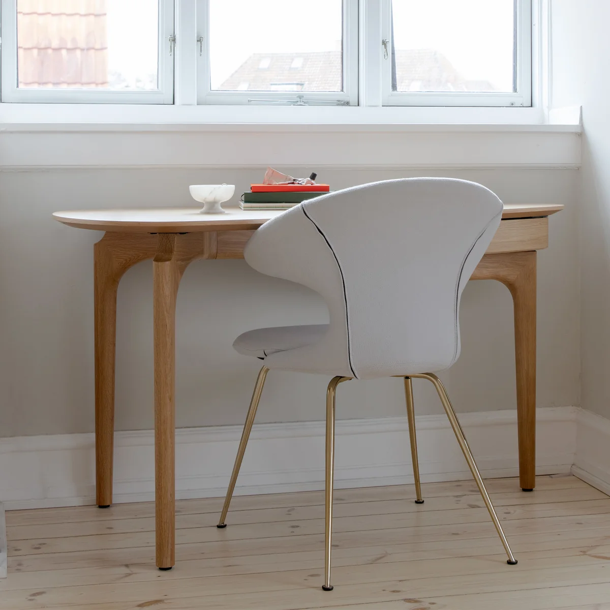 Der Duende Schreibtisch von Umage vereint organische Linien und zeitlose Eleganz zu einem Möbelstück, das nicht nur funktional, sondern auch ästhetisch ansprechend ist. Gefertigt aus hochwertigem Eichenholz in der natürlichen Farbe, strahlt der Schreibtisch eine warme und einladende Atmosphäre aus. Die geschwungenen Beine und die sanften Kurven verleihen ihm eine weiche und ansprechende Ästhetik, die jeden Raum bereichert. Mit seiner großzügigen Arbeitsfläche bietet der Duende Schreibtisch ausreichend Platz für kreatives Schaffen und produktives Arbeiten. Egal ob im Home-Office, im Wohnzimmer oder im Schlafzimmer – dieser Schreibtisch ist nicht nur ein praktisches Arbeitsmöbel, sondern auch ein stilvolles Statement für jeden Raum.
