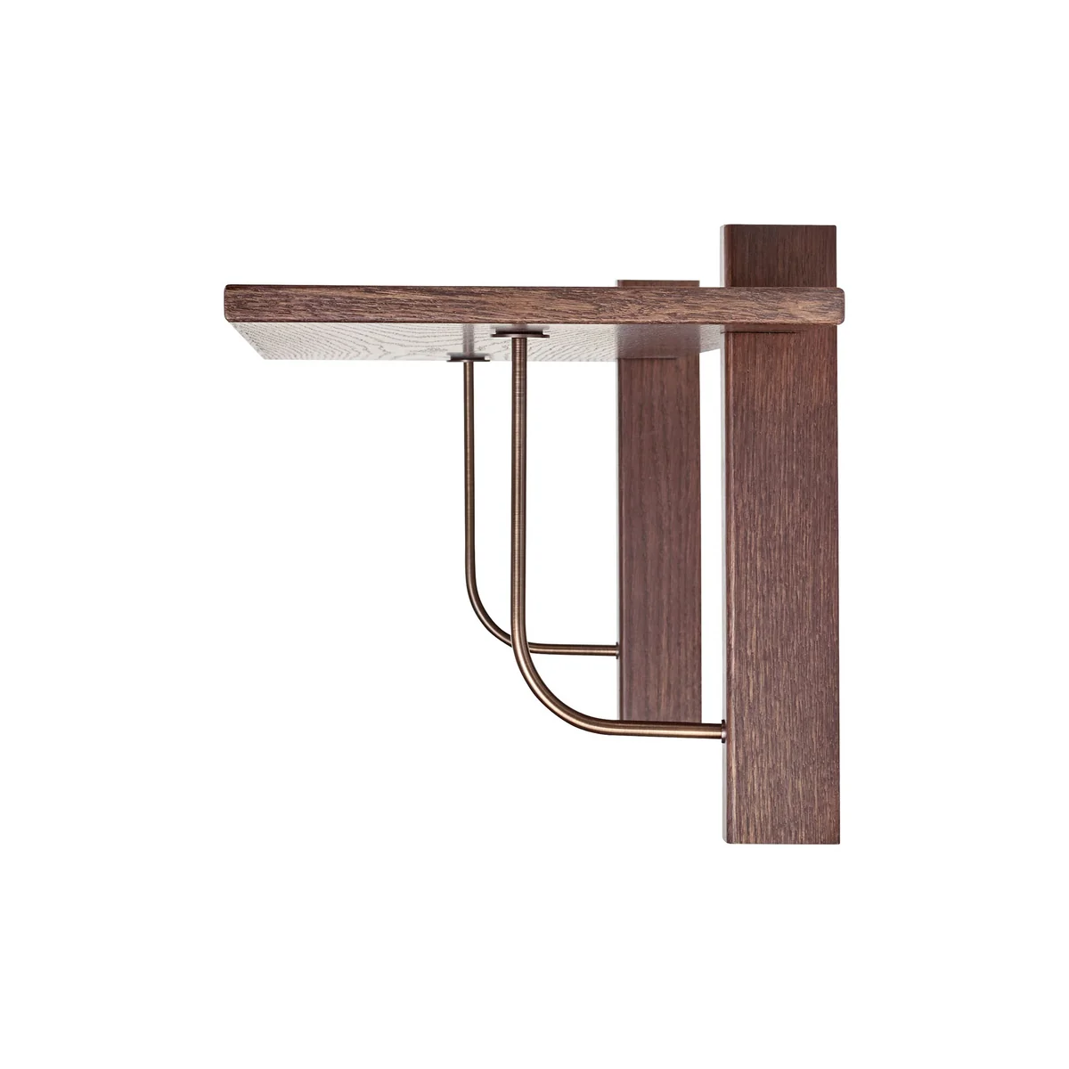 Dieser elegante Entwurf des Designbüros Krøyer-Sætter-Lassen hat seinen Namen und seine Designanspielungen von architektonischen, tragenden Konsolen, die traditionell aus Stein oder Holz gefertigt werden. Als Wandregal kann es alltägliche Gegenstände wie Bücher und Smartphones, aber auch dekorative Objekte tragen, oder sogar als Handtuchhalter verwendet werden.