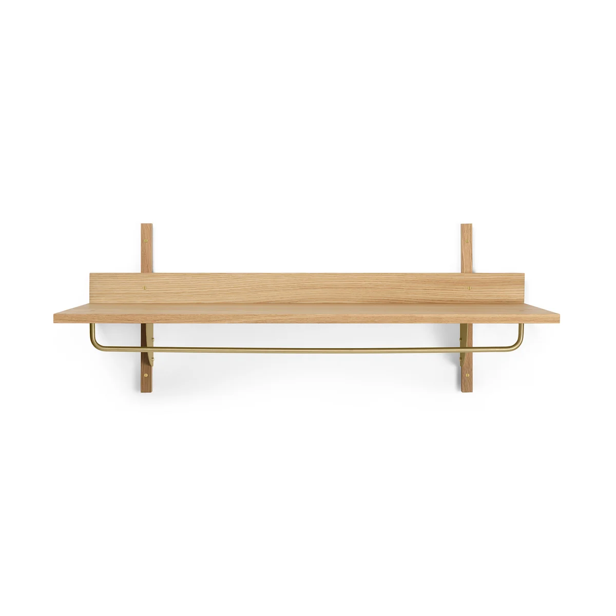 Die Sector Wandgarderobe von Ferm Living ist eine neue und moderne Interpretation von Regalen aus der Mitte des Jahrhunderts und zeichnet sich durch ihre robuste und funktionale Einfachheit und die klassische Kombination von Holz und Messing aus. Er eignet sich gut für den Gebrauch im Flur, um Mäntel aufzuhängen oder mit anderen Elementen der gleichnamigen Kollektion einen funktionalen und einheitlich gestalteten Ankleidebereich im Schlafzimmer zu schaffen.