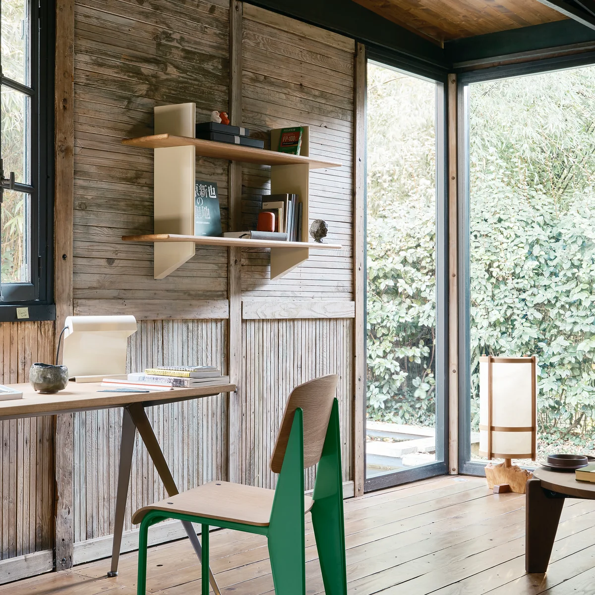 Das Regal bietet reichlich Platz für die liebsten Bücher oder für ein dezentes und modernes Arrangement aus Vasen, Kerzen oder dekorativen Figuren und Bilderrahmen. Auch kleine Topfpflanzen können ihren Platz auf dem Regal einnehmen. Die Stromlinienform des Regals birgt die Designidee, die die Prouvé Produkte teilen. In unterschiedlichen Ausführungen erhältlich, können die Regale, nach Wunsch, dezent und zurückhaltend wirken oder aber markante und kontrastive Farbakzente im Wohnraum setzen.