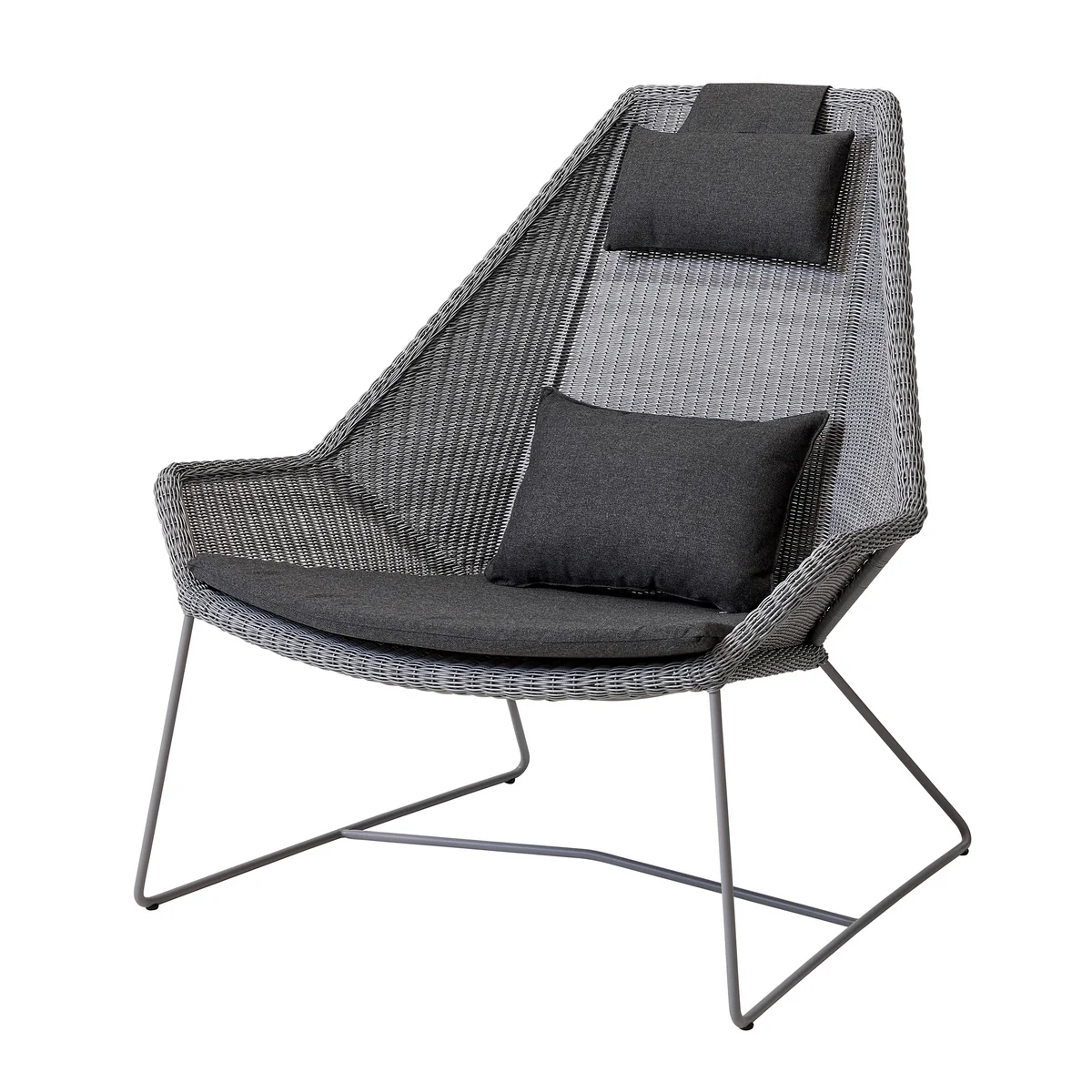 Der Breeze Highback Sessel (5469) Outdoor von Cane-line ist ein äußerst bequemer Lounge Sessel für den Außenbereich. Er überzeugt durch seine extra hohe Rückenlehne, die umhüllende Sitzschale und die bequemen Armlehnen, die zum Relaxen, Lesen und Verweilen einladen. Der Sessel gehört zu einer Serie an modernen Outdoormöbeln, die von Strand + Hvass entworfen wurde. Das Designerduo ließ sich für die Serie von der warmen Sommerbrise inspirieren.
