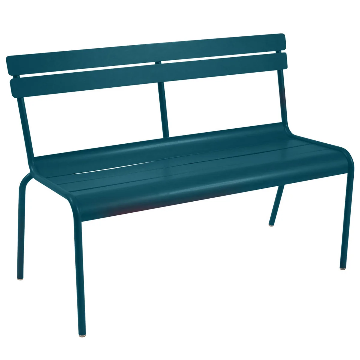 Die Luxembourg Bank ist auch in einer Version ohne Rückenlehne erhältlich. Auch andere Teile der Luxembourg Kollektion wie die Stühle, ein viereckiger und ein rechteckiger Tisch, ein doppelter tiefer Sessel, eine Ablage mit Rollen und eine Kopfstütze sind erhältlich. Alle Produkte sind in sämtlichen Fermob-Farben erhältlich.