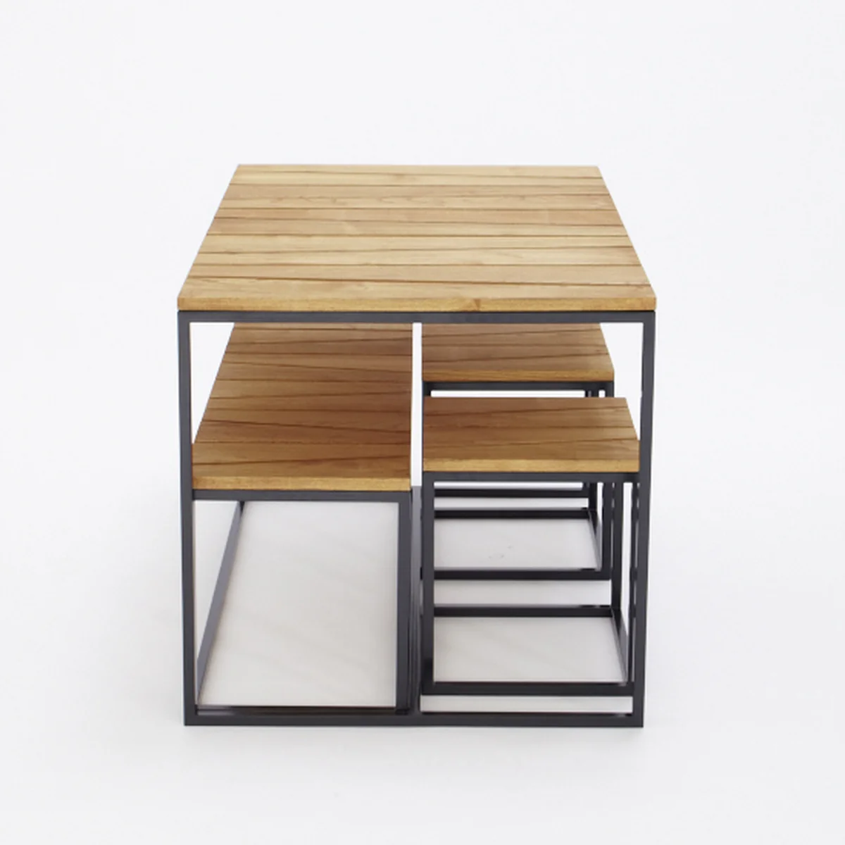 Der Rahmen der Alois Möbel besteht aus pulverbeschichtetem Stahlrohr, die Flächen aus Robinienholz. Jan Kurtz verwendet für die Produktion der Alois Tischgruppe ausschließlich Plantagenholz.