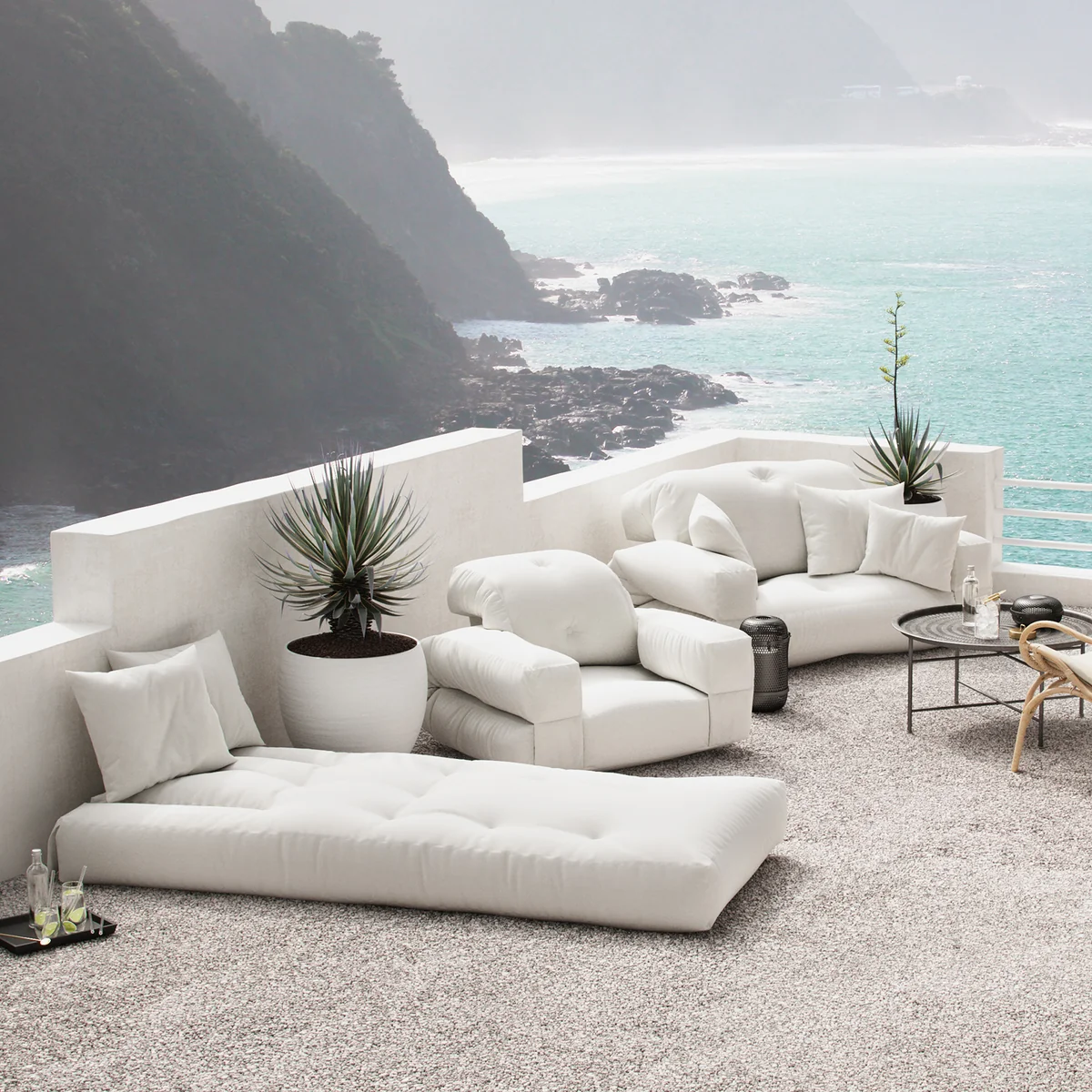 Das Hippo OUT Sofa von Karup Designs bringt heimlichen Komfort und Multifunktionalität nach draußen. Dank der speziellen, flecken- und wasserresistenten Dralon-Faser kann das Designstück guten Gewissens auf der Terrasse, im Patio oder neben dem Pool verwendet werden.