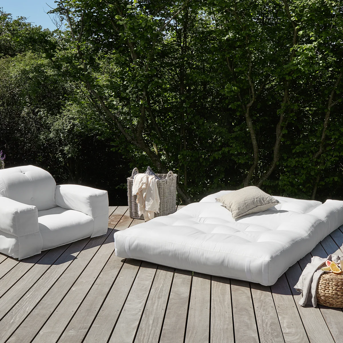 Darüber hinaus lässt sich Hippo OUT in nur wenigen Handgriffen von einem Sofa in eine dicke Matratze verwandeln und zum Beispiel für ausgiebige Sonnenbäder nutzen.
