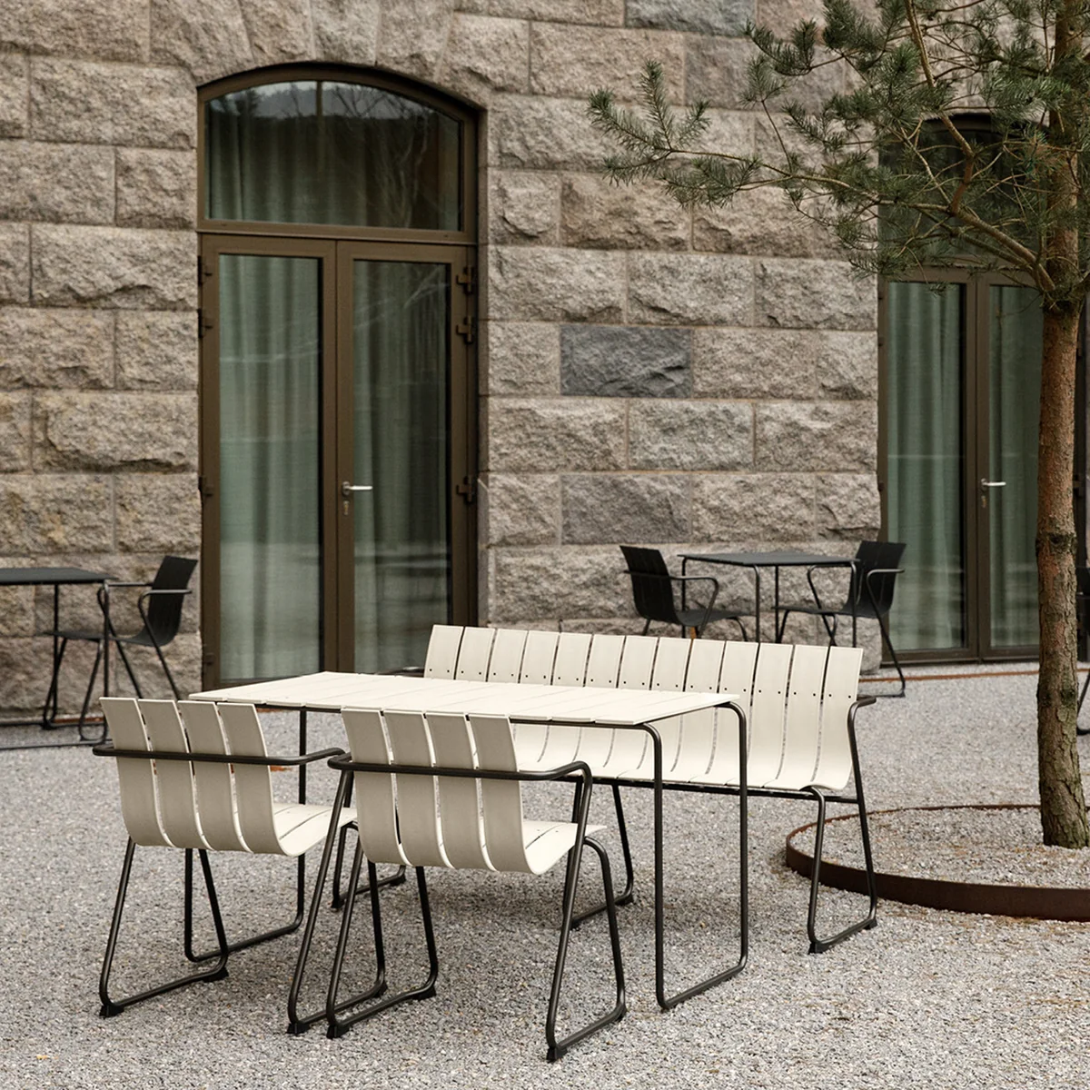 Der Ocean Stuhl von Mater ist ein Entwurf von Nanna Ditzel aus dem Jahr 1955 und wird in der Neuinterpretation in Zusammenarbeit mit dem dänischen Cleantech-Unternehmen Plastix aus recycelten Fischernetzen hergestellt. Der Stuhl besteht aus einem Stahlgestell mit brünierter Oberfläche und Sitz- sowie Rückenlehne aus recycelten Fischernetzen und Hartkunststoff. Der Stuhl ist für den Innen- sowie Außenbereich geeignet und sorgt drinnen wie draußen für einen modernen und geradlinigen Look.