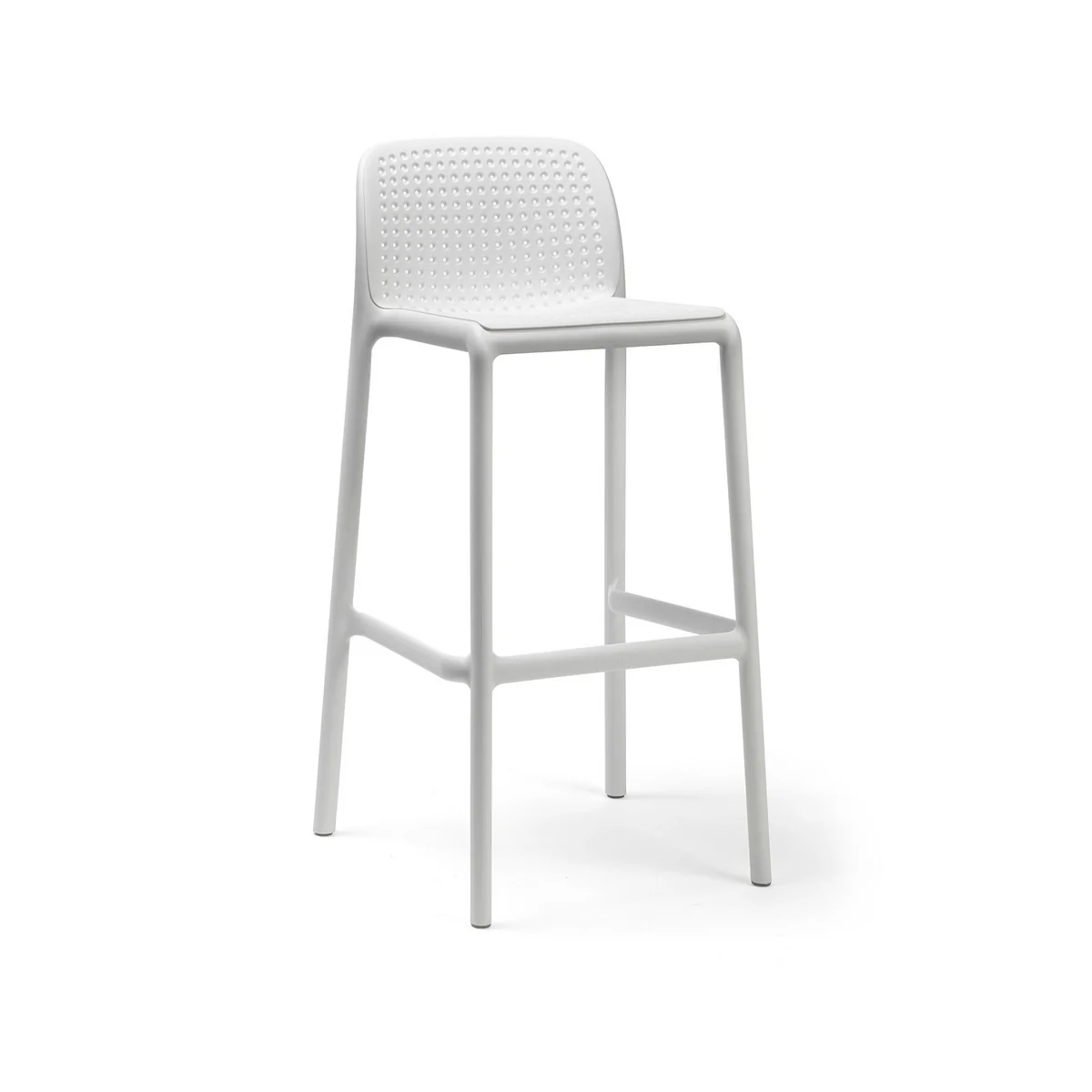 Der Lido Barstuhl von Nardi kann hervorragend für die hauseigene Bar im Garten oder in der Küche genutzt werden. Das schlichte Design ist durch abgerundete Formen gekennzeichnet, sodass ein weiches, harmonisches Erscheinungsbild entsteht. Sitzfläche und Rückenlehne sind mit einer Perforierung versehen, die dem Barstuhl ein luftig-lockeres Aussehen verleiht. Im Außenbereich genutzt, kann durch die kleinen Löcher zudem Regenwasser leicht abfließen, sodass keine Pfützen entstehen.