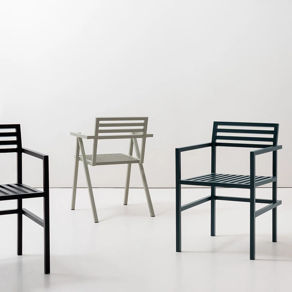 Der 19 Outdoors Dining Armchair der Butterfield Brothers für den Hersteller NINE begeistert mit ihrem einzigartigen, modernen Design. Die '19 Outdoor' Kollektion ist von dem Wohltätigkeitsprojekt '19 Chairs' der Designer inspiriert. Der Armlehnstuhl eignet sich für den Outdoor-Bereich und wird aus Aluminium gefertigt. Das Material kann mit wenig Energieeinsatz recycelt und als recycelbarer Artikel wiederverwendet werden - demnach ist der vollumfassende Produktionsprozess nachhaltig. Der Outdoor Dining Armchair ist in unterschiedlichen Farben erhältlich.
