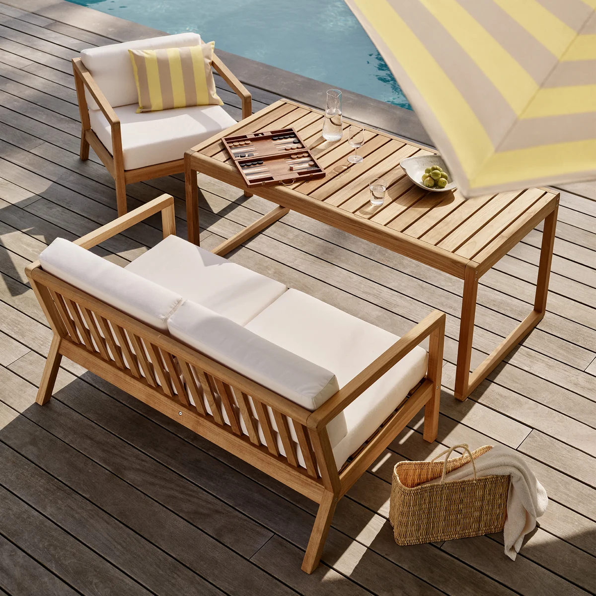 Das Teakholz des Rahmen stammt aus nachhaltiger Forstwirtschaft. In Ergänzung mit den wetterfesten Barriere Panama Kissen lädt das Virkelys-Sofa im Sommer zum gemütlichen Lesen und Verweilen ein.
