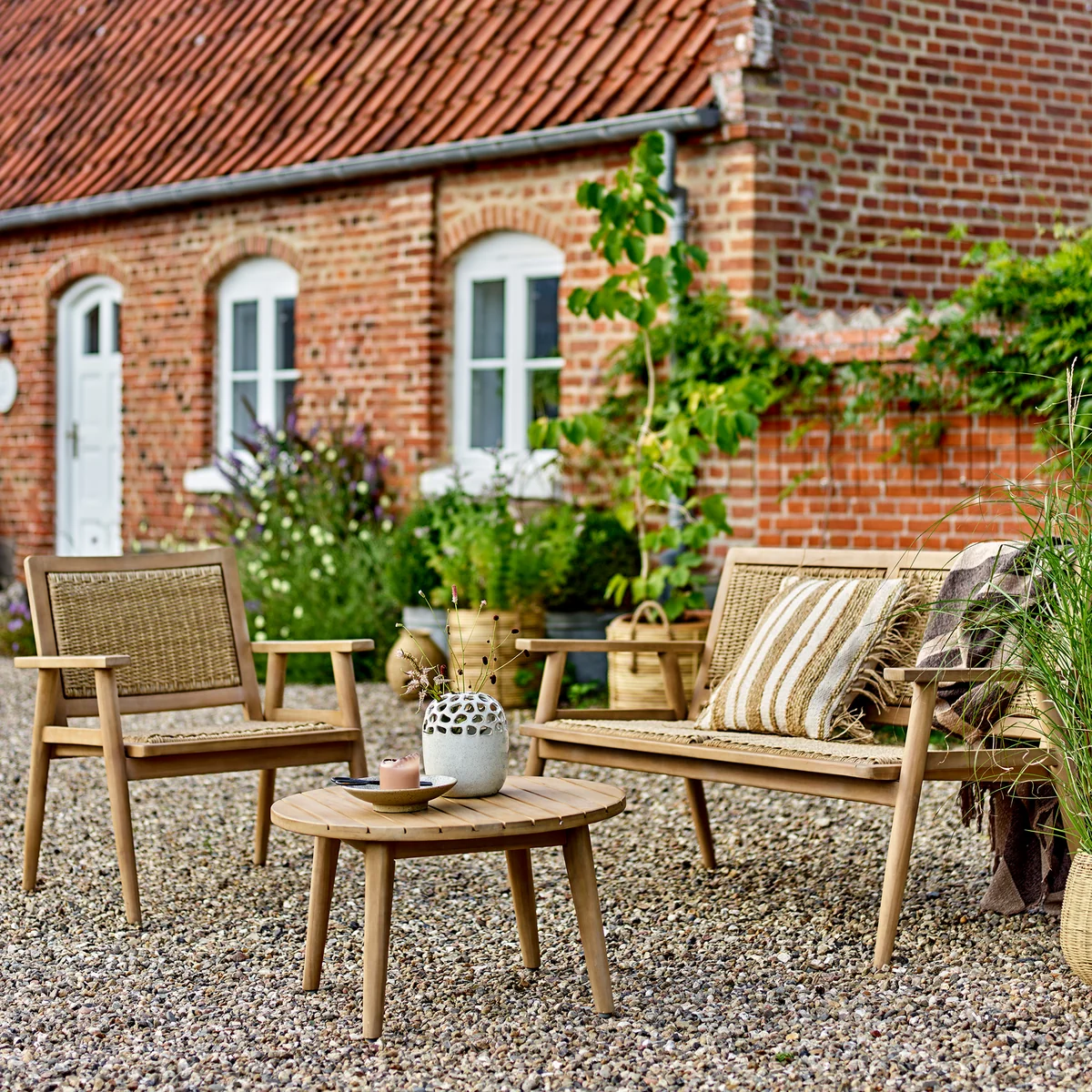 Das Sorrento Sofa von Bloomingville vereint zeitloses Design mit nachhaltigen Materialien. Der Rahmen besteht aus FSC®-zertifiziertem Akazienholz, während Sitz und Rückenlehne aus Polyrattan gefertigt sind – ideal für einen natürlichen Look im Außenbereich. Ob auf der Terrasse oder im Wintergarten: Das Sofa lässt sich mühelos mit anderen Gartenmöbeln kombinieren.