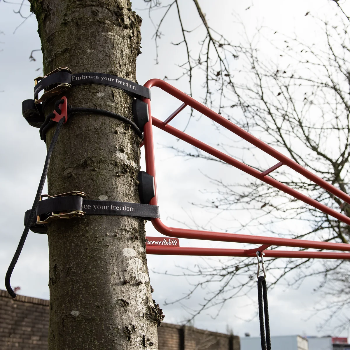 Mit der Swing Schaukel von Weltevree lässt sich an jedem beliebigen Ort im Freien ein Spielplatz für Groß und Klein erschaffen. Dazu muss die Stahlvorrichtung mithilfe der Spannbänder einfach an einem Baum oder Pfahl befestigt werden und schon geht der Schaukel-Spaß los!