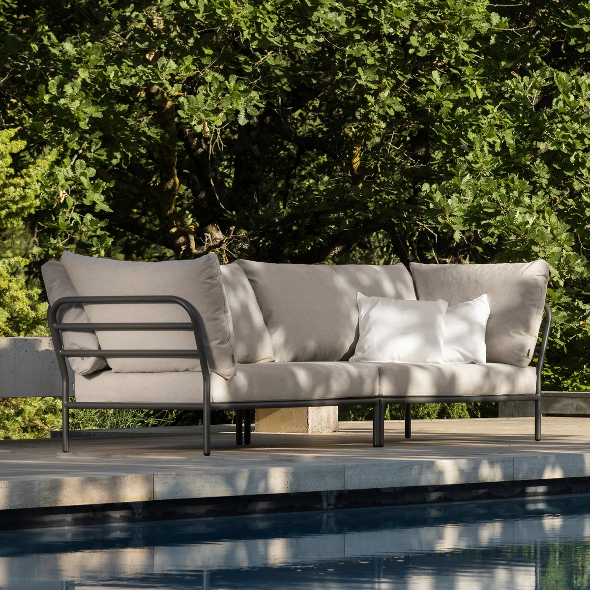 Das robuste Aluminiumgestell sorgt für Stabilität, während die großzügigen Polster mit Sunbrella®-Bezug das Sitzen zum Genuss machen. So entsteht ein stilvoller Rückzugsort, der Design, Nachhaltigkeit und Komfort auf höchstem Niveau vereint.