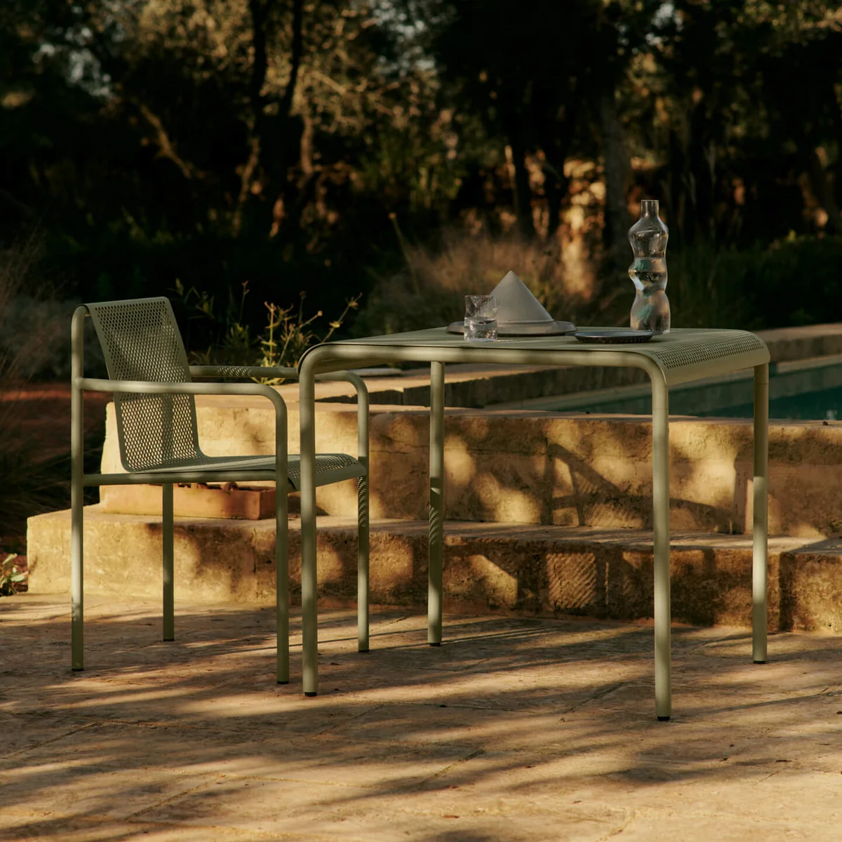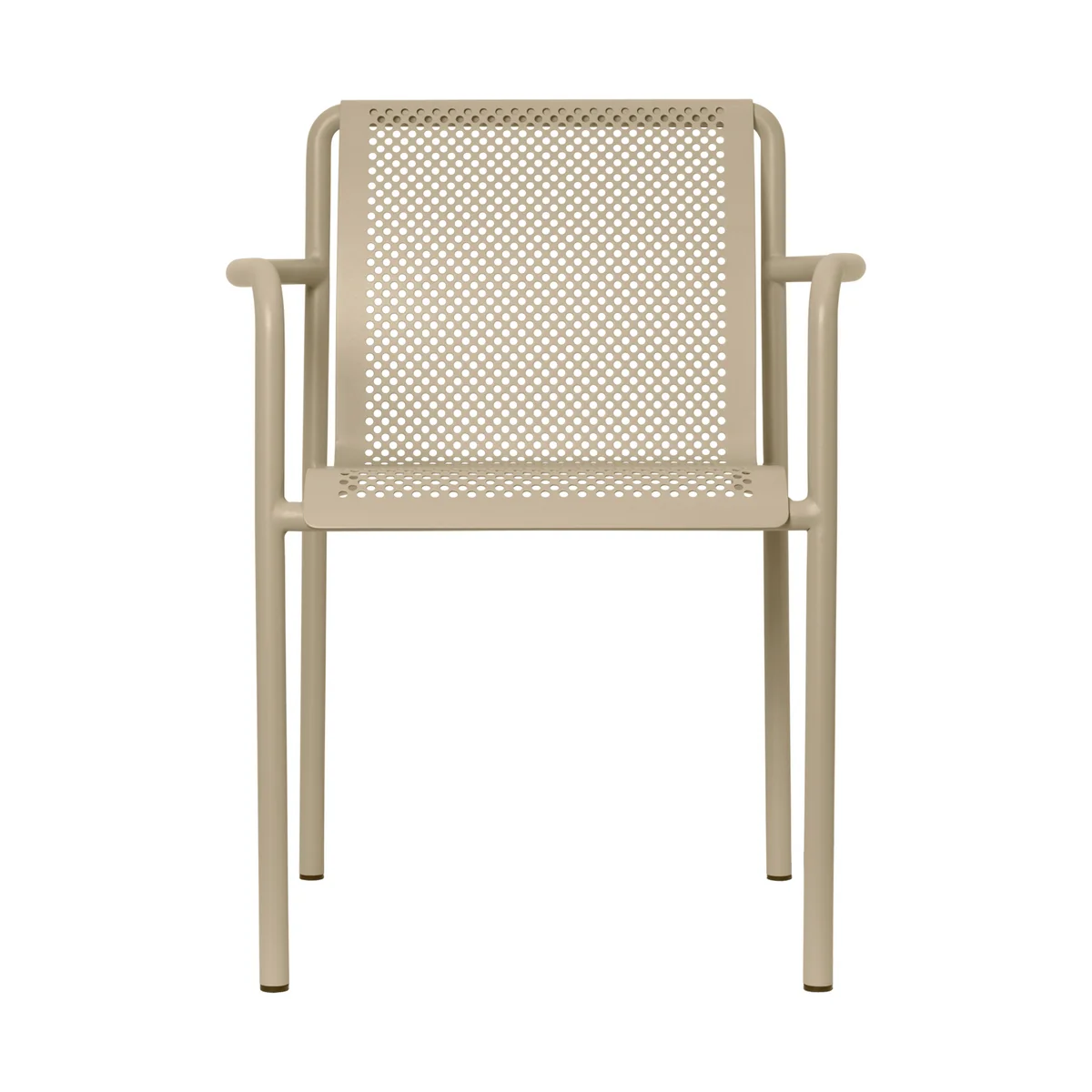 Der Dapple Gartenarmlehnstuhl von Ferm Living ist von der Schönheit des Sonnenlichts inspiriert, das durch die Blätter scheint und eine beruhigende Atmosphäre im Außenbereich schafft. Gefertigt aus pulverbeschichtetem, verzinktem Stahl, bietet dieser Stuhl sowohl Strapazierfähigkeit als auch Schutz vor Witterungseinflüssen, während er gleichzeitig eine elegante Ästhetik bewahrt. Mit bequemen Armlehnen ausgestattet, bietet er zusätzlichen Komfort und ergänzt deinen Außenbereich auf eine schlichte, aber wirkungsvolle Weise.
