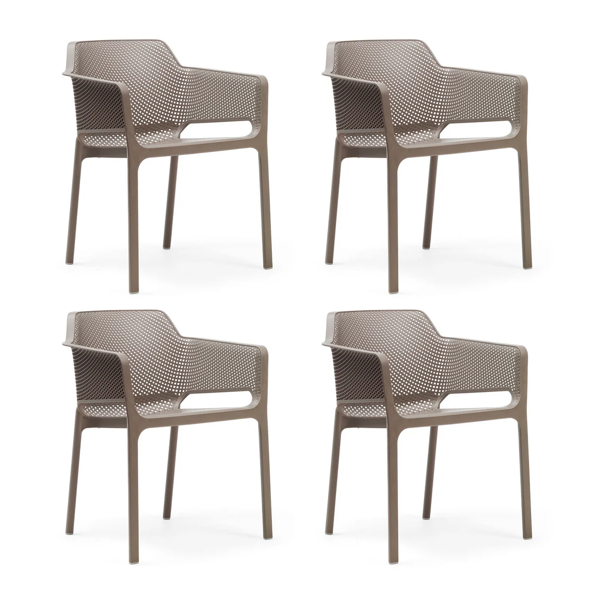 Erhältlich ist der von Raffaello Galiotto entworfene Net Armlehnstuhl in verschiedenen Farben mit Matt-Effekt, die sich hervorragend untereinander sowie mit weiteren Gartenmöbeln von Nardi kombinieren lassen. Passende Auflagekissen sind separat erhältlich.