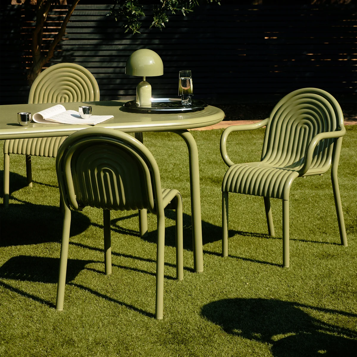 Die Groove-Kollektion, die auf über einem Jahrzehnt intensiver Forschung basiert, ermöglicht flexible Nutzungskonzepte. Mit passenden Outdoor-Polstern und der Möglichkeit zum effizienten Stapeln und Lagern fügt sich der Groove Gartenstuhl nahtlos in unterschiedlichste Arrangements ein. Erhältlich in den eleganten Farbtönen Moss und Putty, verbindet er zeitgemäßes Design mit praktischer Funktionalität.