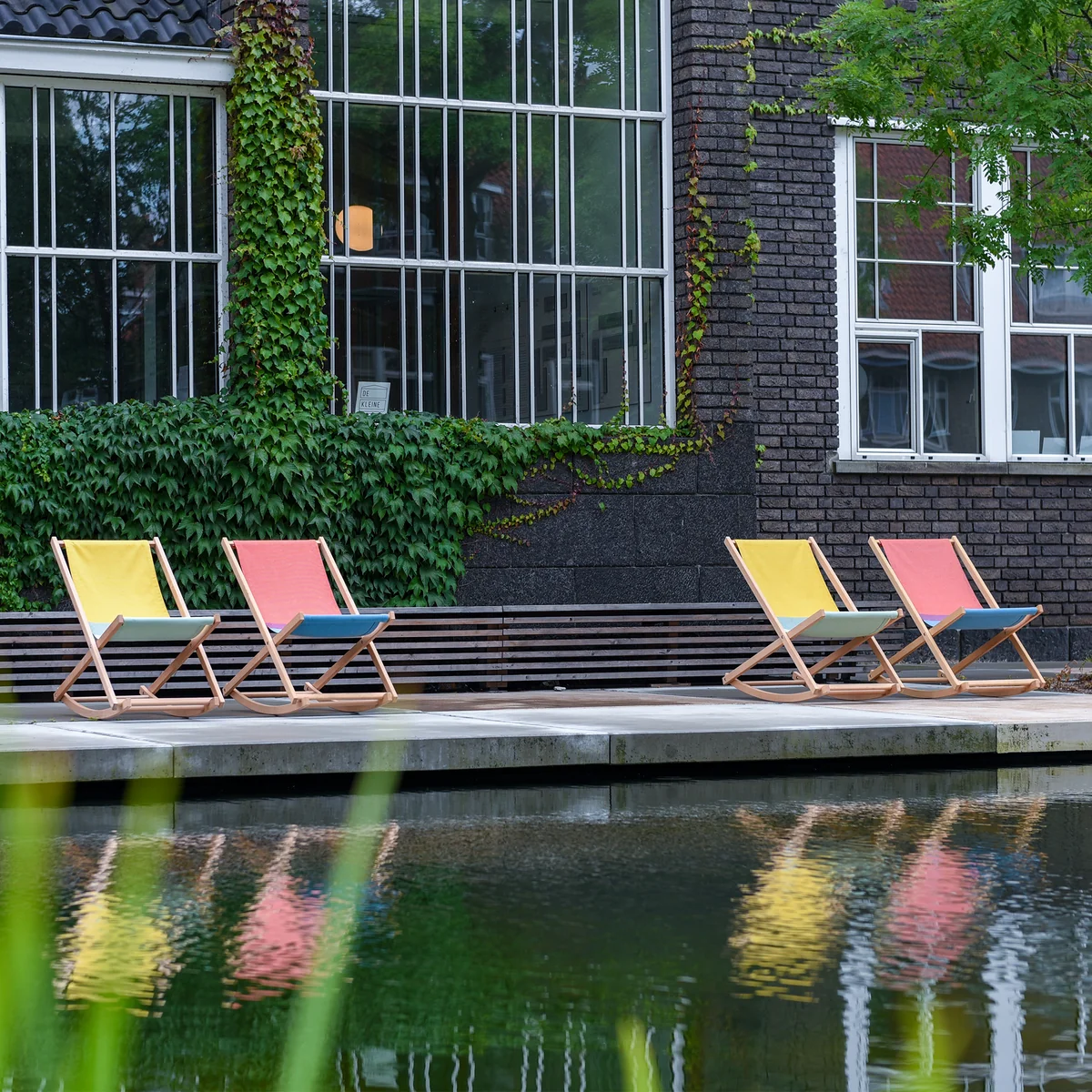 Weltevree fertigt den Beach Rocker aus starkem, natürlich lackiertem Buchenholz an. Der Stoff ist in verschiedenen Farben erhältlich und besteht zu 100% aus schmutzabweisender und widerstandsfähiger Baumwolle. Für die vom Sonnenuntergang inspirierten Farben ist das Studio RAW COLOR verantwortlich.