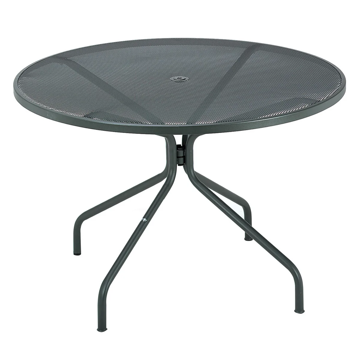 Mit seinen Waben in der Tischplatte ist der Cambi ausgersprochen praktisch, denn Wasser läuft ab und der Tisch ist nach Regenschauern schnell wieder nutzbar, ohne dass er getrocknet werden muss. Die Metallstruktur bricht das Licht auf effektvolle Weise und erzeugt schimmernde Licht- und Schattenspiele im Garten, auf dem Balkon und auf der Terrasse.