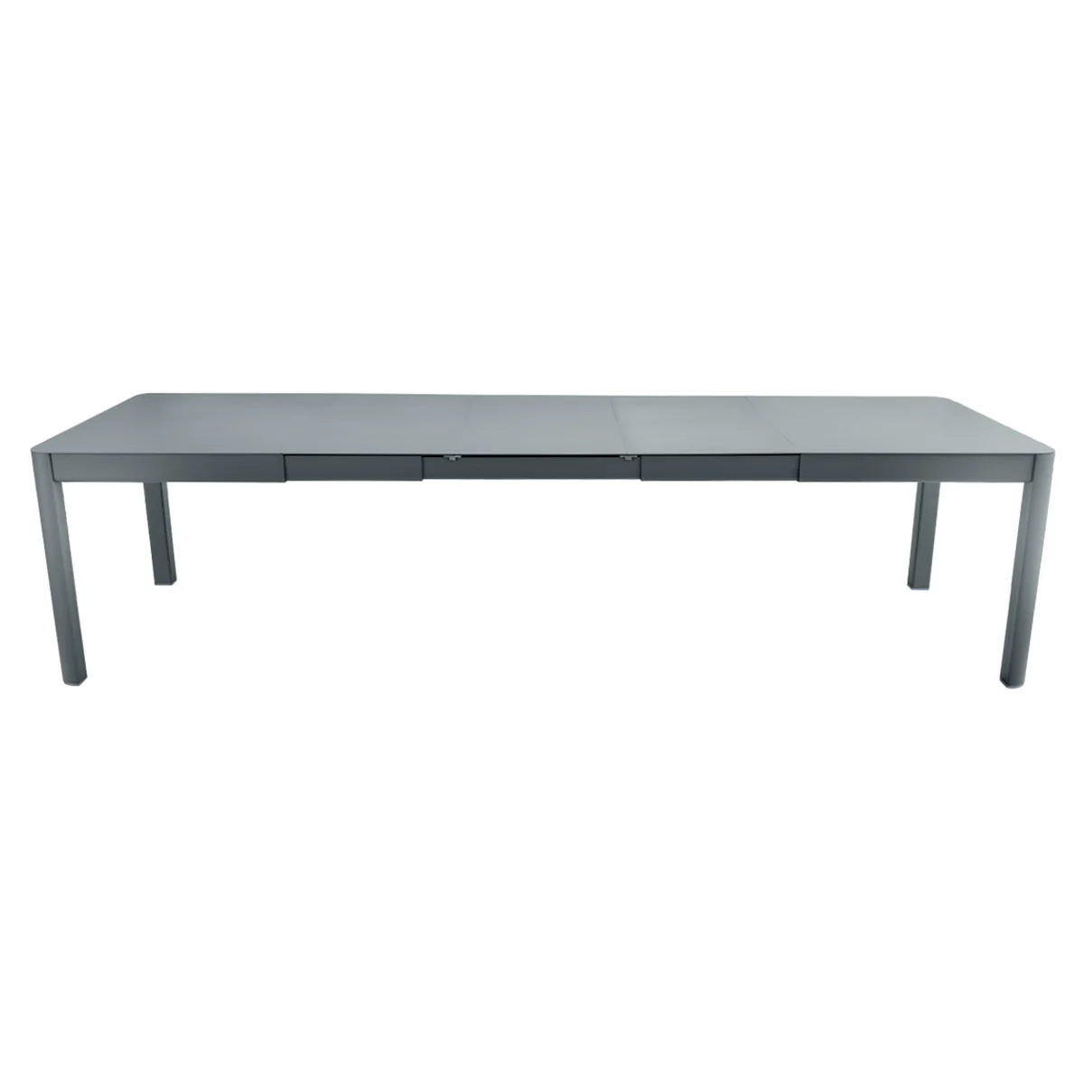 Der Ribambelle Gartentisch von Fermob bietet 6 bis 8 Personen Platz – ob mit oder ohne zusätzliche Platte. Dank eines Teleskopsystem mit Schienen kann die Verlängerungsplatte eingesetzt werden, um den Gästen im Handumdrehen zwei zusätzliche Plätze anbieten zu können. Und auch das sichtgeschützte Aufbewahrungsfach unter der Tischplatte ist äußerst nützlich. Übrigens: Zusammengeschoben ist nicht erkennbar, dass Ribambelle ein Tisch zum Ausziehen ist.