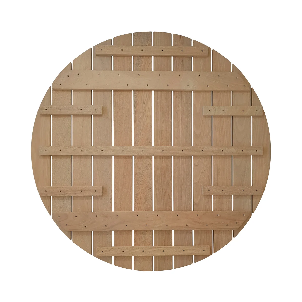 Runder Gartenesstisch aus Holz und feuerverzinktem Stahl
