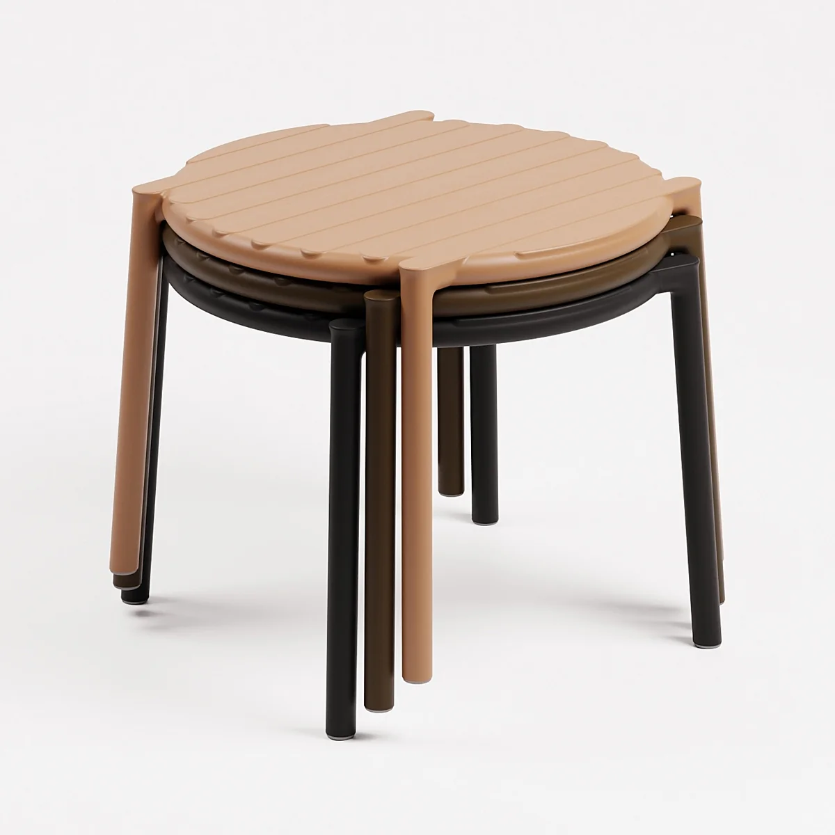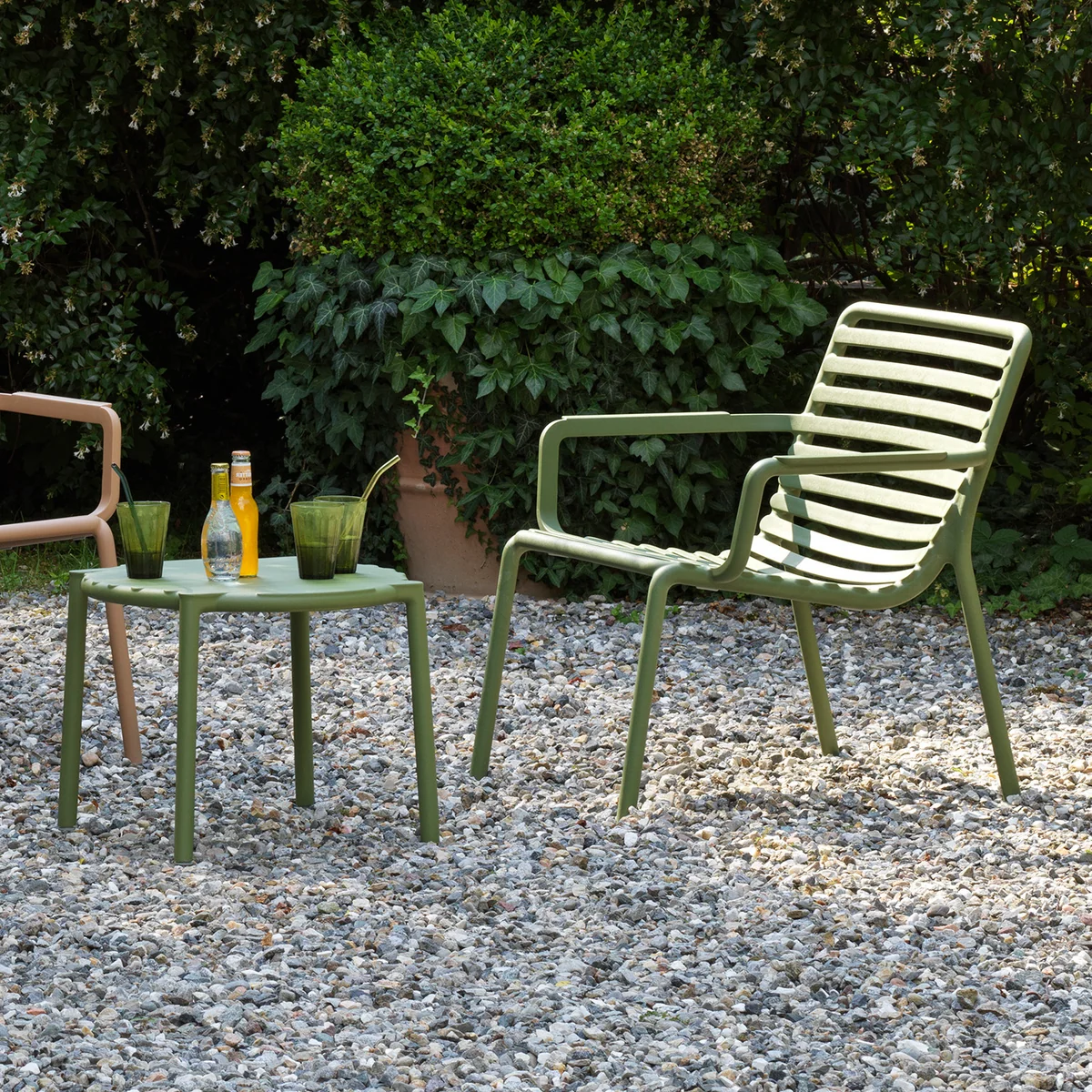 Der Doga Beistelltisch verfügt über ein zeitgemäß neu ausgelegtes Daubenthema, das passend zu den Outdoor Stühlen von Nardi perfekt zum Ausdruck kommt. Der, aus einem Stück bestehende, kleine Tisch aus glaserverstärktem Kunststoff verfügt über eine runde Tischfläche mit einem frischen und leichten Design. Der Tisch ist handlich und stapelbar, sowie mühelos zu desinfizieren. Er ist vollkommen recycelbar.