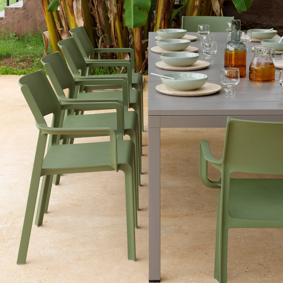 Der Rio Ausziehtisch von Nardi eignet sich dank seiner Größe hervorragend für Grillabende mit Freunden und der Familie. Mit nur wenigen Handgriffen kann der Tisch verlängert werden, sodass sie Platz für zahlreiche spontane Gäste bietet. Die Erweiterung befindet sich unter der Tischplatte und kann bei Bedarf einfach eingesetzt werden, indem der Rahmen auseinandergezogen wird.