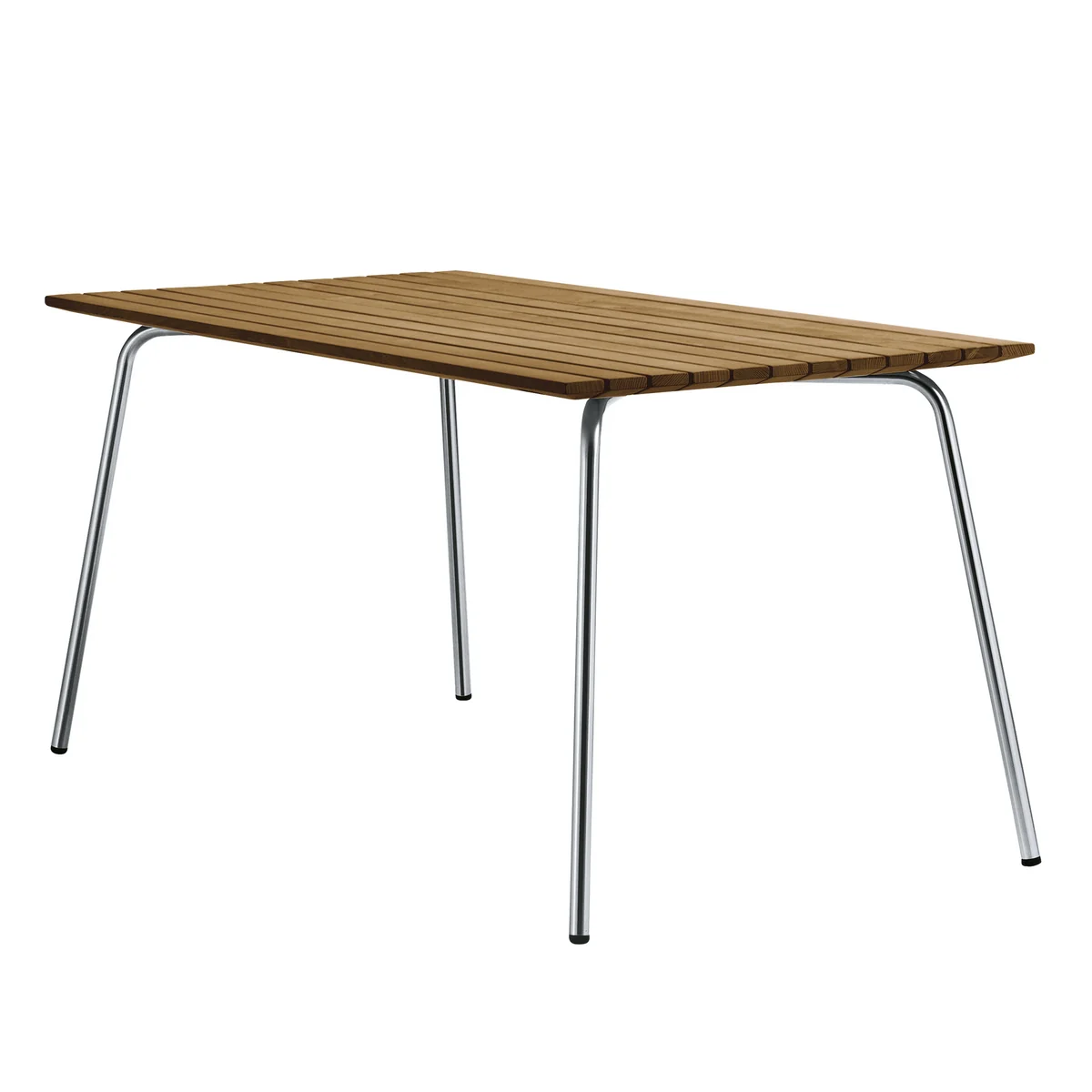 Der S 1040 Gartentisch aus der All Seasons Kollektion von Thonet zeichnet sich durch seine robuste und dennoch elegante Erscheinung aus. Seine Tischplatte ist aus afrikanischem Iroko Holz (FSC®-Siegel) gefertigt, das sich durch seine hohe Dichte und absolute Wetterfestigkeit auszeichnet. Damit eignet sich das Holz bestens für die Nutzung im Außenbereich und kann wunderbar mit weiteren Gartenmöbeln aus der All Seasons Kollektion kombiniert werden.