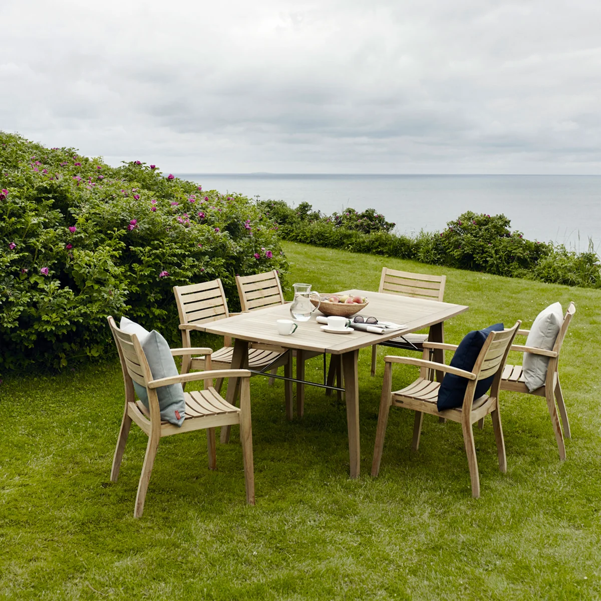 Der Ballare Tisch von Skagerak ist ein stilvoller Gartentisch aus Teakholz, der durch Design und Funktionalität gleichermaßen überzeugt. Die minimalistische Gestaltung des Esstisches fügt sich hervorragend in den Garten oder auf dem Balkon ein und kann bestens mit den passenden Ballare Stühlen zu einer einladenden Sitzecke kombiniert werden.