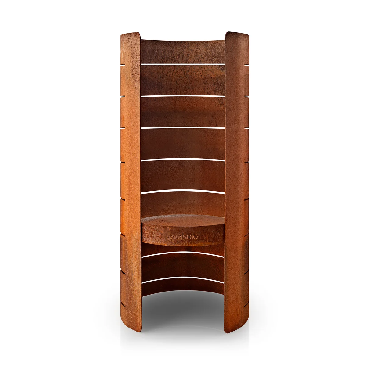 Der hohe, dekorative Holzofen aus Cortenstahl eignet sich für den Garten oder die Terrasse, wo er zum neuen Familienmittelpunkt wird.
