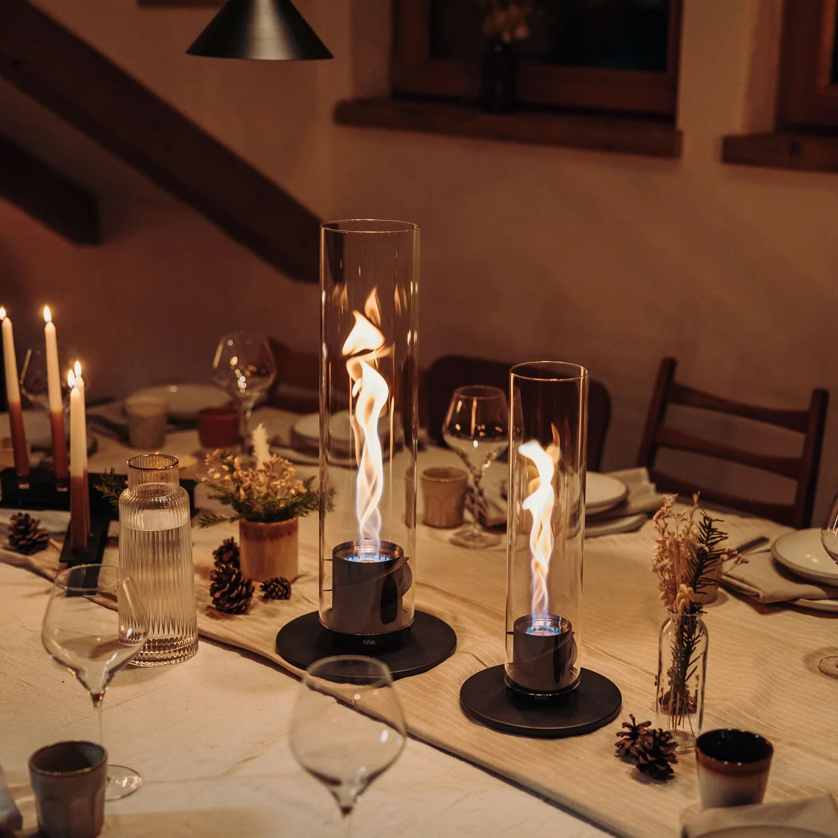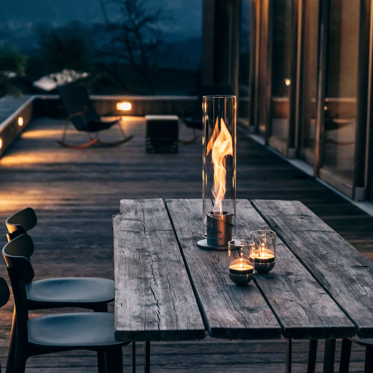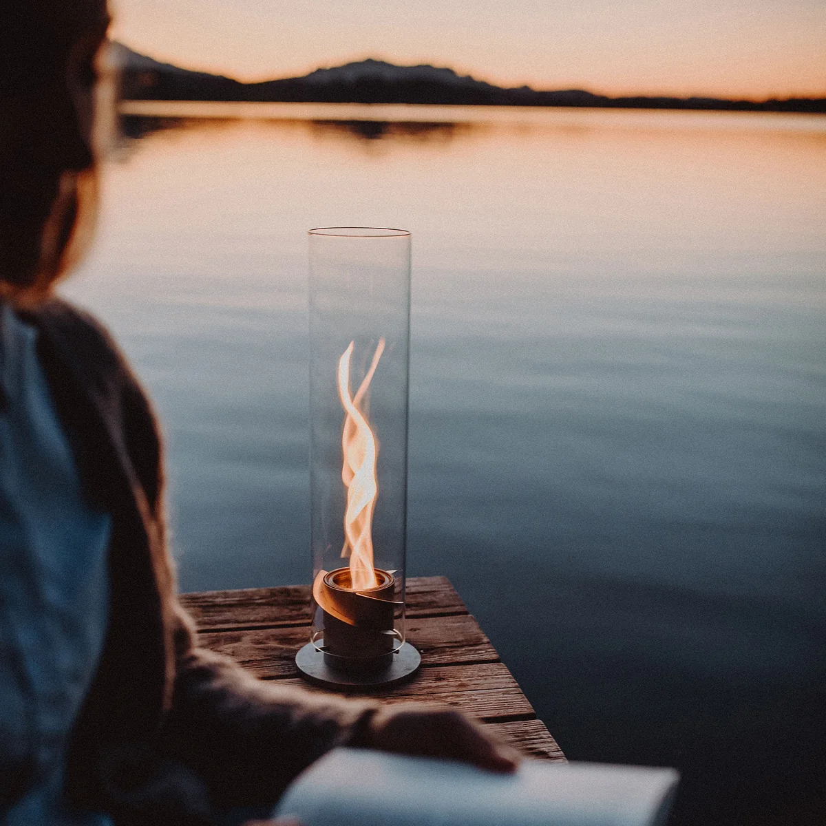 Spin von höfats ist Tischfeuer, Windlicht und Gartenfackel in einem. Mit dem faszinierenden Flammenwirbel schafft Spin Lagerfeueratmosphäre auf Balkon und Terrasse und wird auch im Innenbereich zu einem schönen Hingucker.