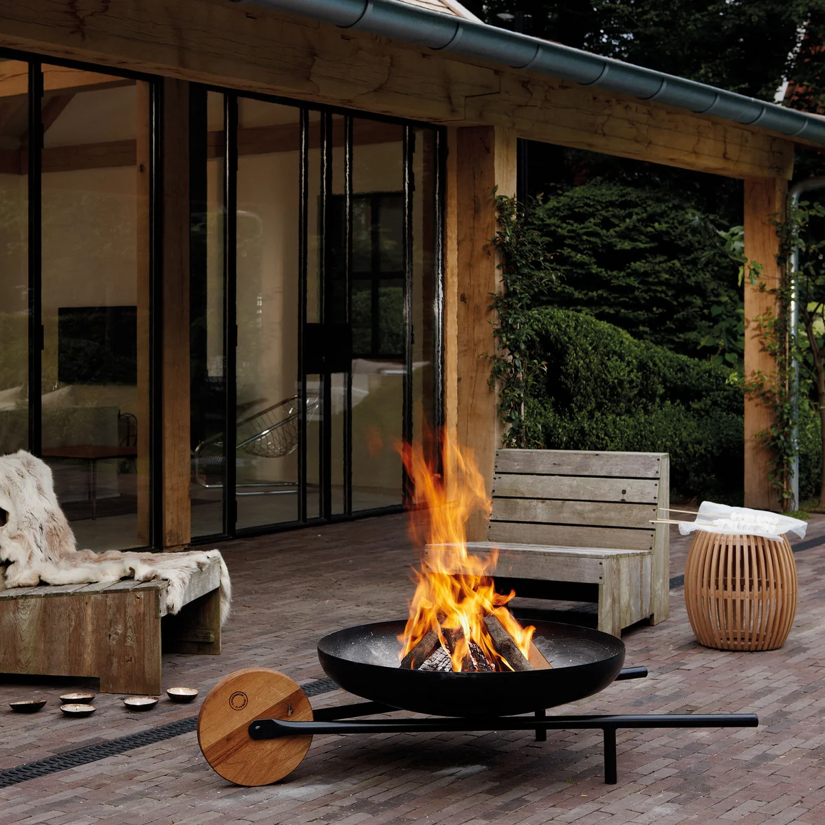Konstantin Slawinski - Barrow Feuerschale mit Grillfunktion, rostfreier Edelstahl lackiert / Eiche