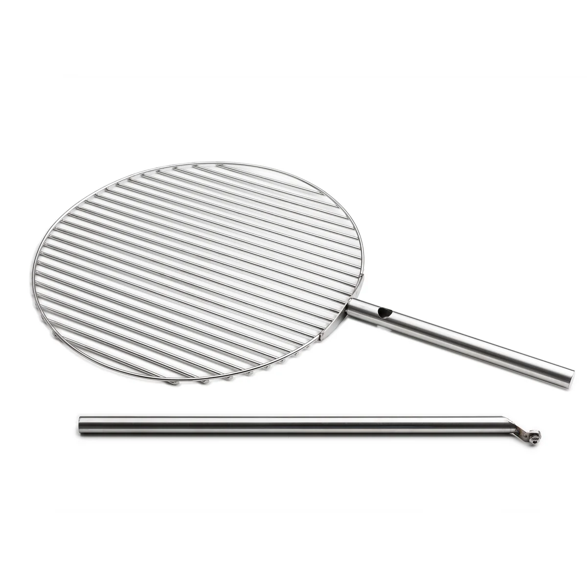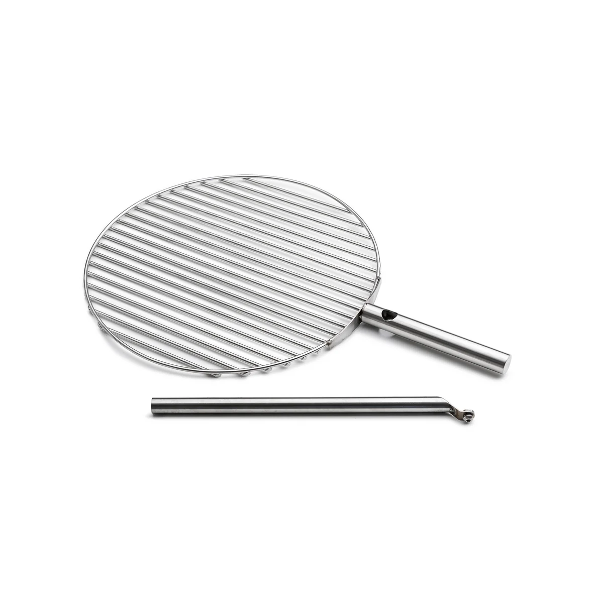 Das Triple Grillrost ist eines der passenden Zubehörteile zur Triple Feuerschale von höfats. Dank des Rosts aus Edelstahl lässt sich die rustikale Feuerschale im Handumdrehen in einen Grill verwandeln. Hierfür wird es auf die dafür vorgesehene Stange gesetzt, an der sich das Rost stufenlos in der Höhe verstellen und einfach schwenken lässt. So ist das Rost flexibel in der Anwendung. Je nach Bedarf kann das Grillgut so scharf angebraten, leicht gebrutzelt oder bloß warmgehalten werden.