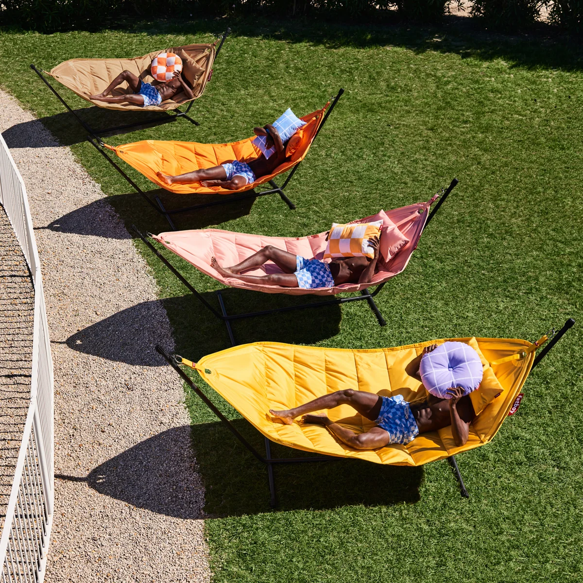 Der Name Headdemock leitet sich vom englischen Wortspiel "Have you got one too?" ab. Groß und weich gepolstert ist die Hängematte des Herstellers der Original Fatboy Sitzsäcke.