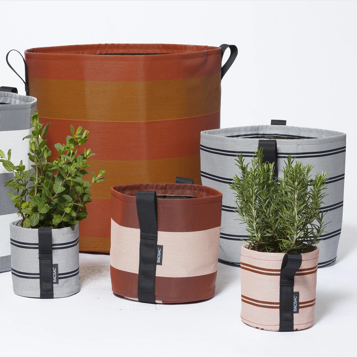 Designer Godefroy de Virieu und die Landschaftsgärtner Louis de Fleurieu und Virgile Desurmont schufen hierfür eine Kollektion von Pflanzsäcken, die aus 100% recyclebarem Geotextil oder Batyline Gewebe bestehen, atmungsaktiv, sowie UV-beständig und frostresistent sind. Die Bacsac Pflanztaschen sind außerdem sehr leicht und lassen sich im Gegensatz zu schweren Pflanzkübeln bequem und einfach auf jede Dachterrasse transportieren.