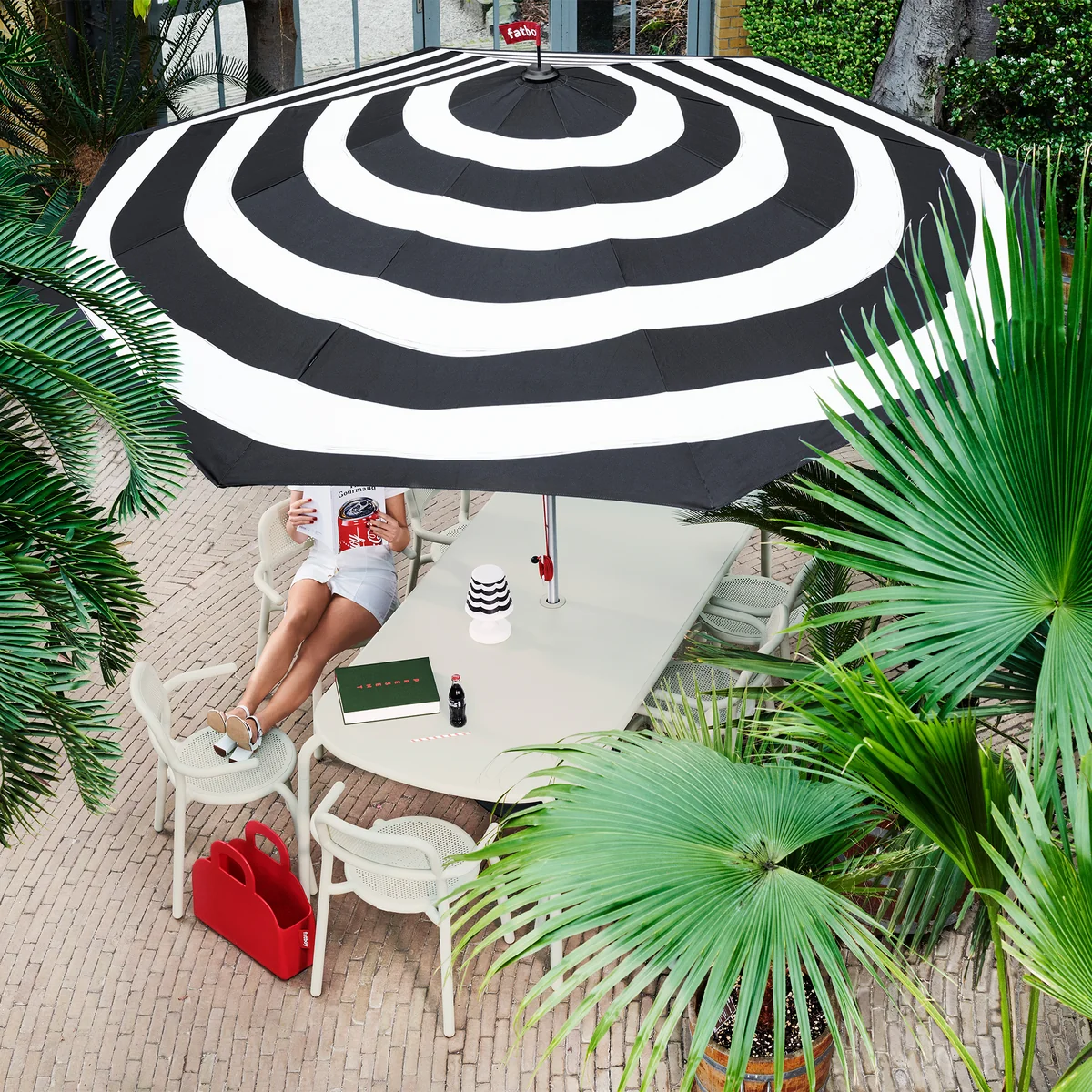Das Stripesol Set Sonnenschirm + Ständer von Fatboy lässt den Außenbereich zu einem Ort der Entspannung und Erholung werden! Dieser luxuriöse Sonnenschirm schützt vor den stärksten Sonnenstrahlen und bietet dabei ein einzigartiges Design. Der robuste Fuß sorgt für Stabilität und das raffinierte Zugsystem ermöglicht ein einfaches Auf- und Zuklappen des Schirms.