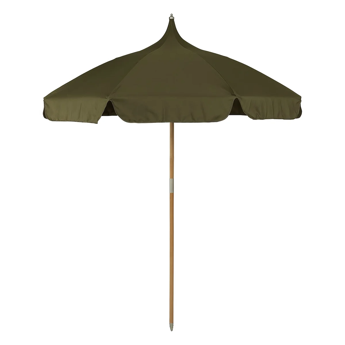 Der Lull Sonnenschirm von Ferm Living bietet das perfekte Schutzschild für die unerbittliche Hitze des Sommers. Der Sonnenschirm lädt zu entspannten und gelassenen Momenten im Schatten ein und ist ideal für Gartenpicknicks am Strand und überall dort, wo Schutz vor der Sonne benötigt wird. Mit der romantischen Pagodenform und dem Holzstiel bietet der Schirm eine großzügige Fläche für gemeinsame Ausflüge. Der Lull Umbrella bietet UV30+ Schutz und wird in einer praktischen, passenden Tasche geliefert, um den Transport zu erleichtern.