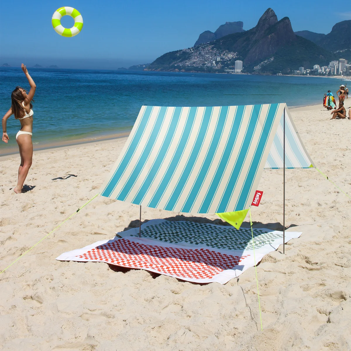 Unter dem Sonnenschutz haben bis zu 2 Erwachsene und 2 Kinder platz. Dank des einfachen Mechanismus lässt sich Miasun durch eine Person allein in kürzester Zeit aufstellen und zusammenklappen. Der Sonnensegel von Fatboy ist in verschiedenen Farben und Mustern erhältlich. Er besteht zu 100 % aus Baumwollle und kann bei 30° in der Waschmaschine gereinigt werden.