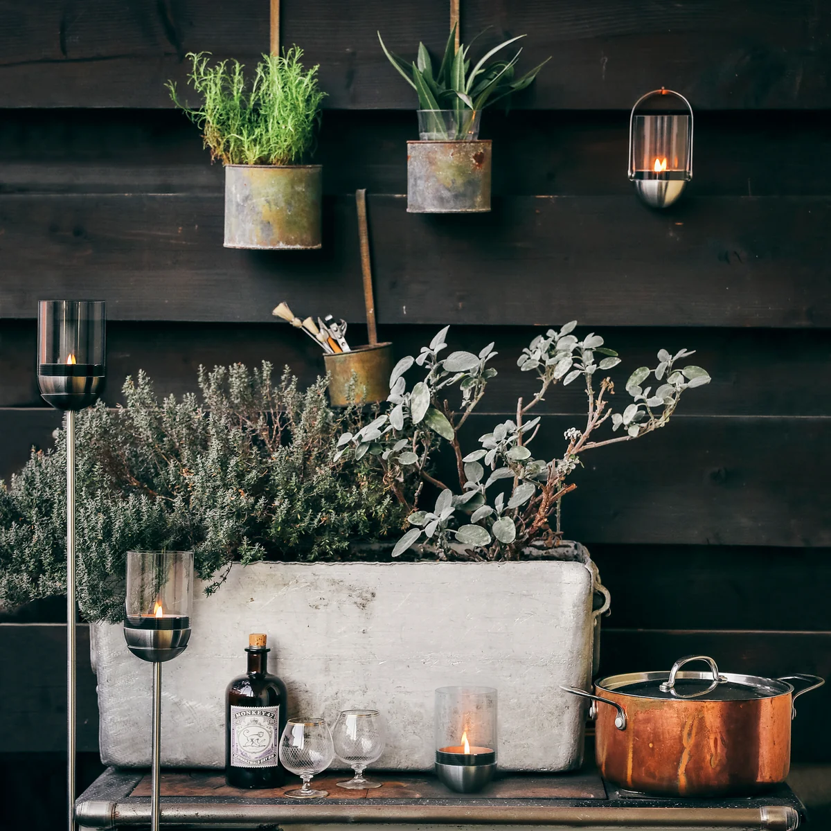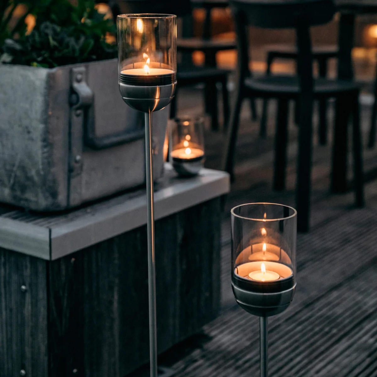 Erhältlich ist zudem eine passende Aufhängung sowie ein Stab und Fuß, sodass sich das Teelicht in gewünschter Art und Weise, beispielsweise an einem Deckenbalken hängend oder auch zu mehreren erhöht auf der Rasenfläche platziert, nutzen lässt.
