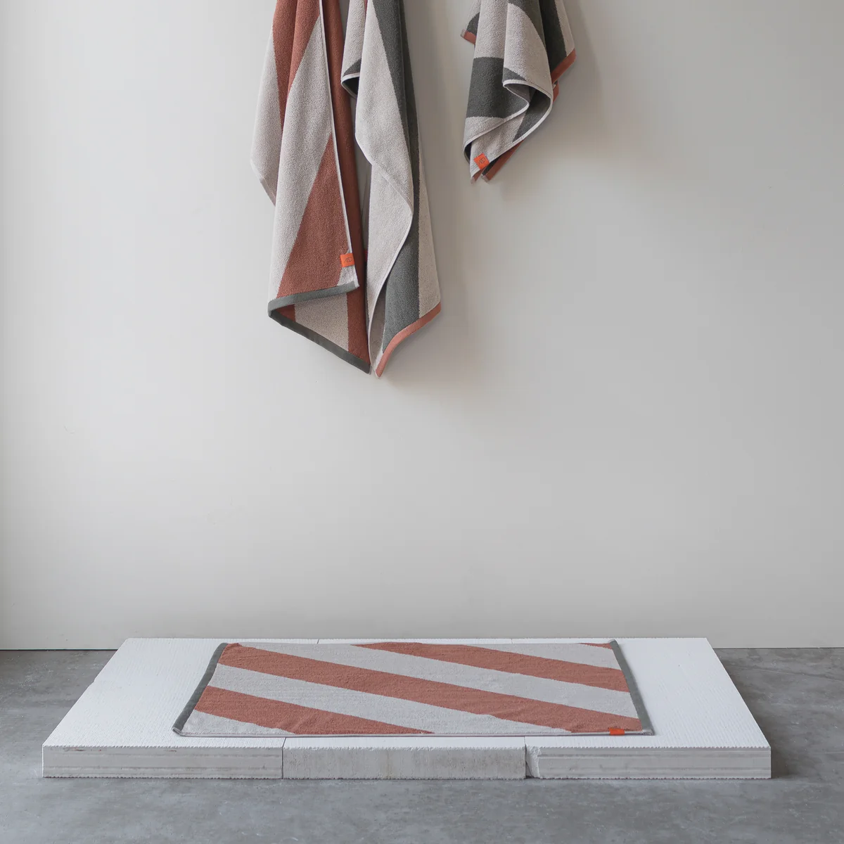 die Diagonal Badematte bringt mit diagonalen Streifen und harmonischen Farbkombinationen frische Ausstrahlung ins Badezimmer. Hergestellt aus zertifizierter Bio-Baumwolle (OEKO-TEX® 100) bietet die Matte eine weiche und rutschfeste Oberfläche. Die dekorative orangefarbene Schlaufe erleichtert das Aufhängen und Trocknen zwischen den Verwendungen.